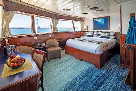Yacht-scaled and trim, her mahogany and gleaming brass fittings create a gracious and welcoming environment. From broad open decks (complete with comfy hammocks perfect for iguana-like basking in the sun) to delectable dining on fresh, local food, Islander delivers a sophisticated and amiable expedition. Designed for active exploration, she can visit areas larger vessels can’t, and guests often compare Islander to being aboard a private yacht—one that’s as smart as she is lovely and dedicated to discovery.