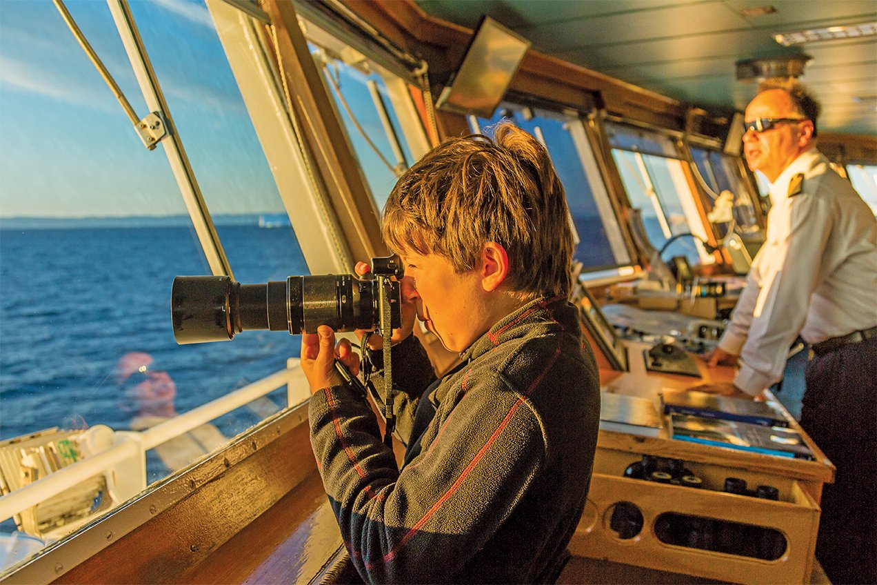 The plans to completely rebuild her drew on 50 years of pioneering expedition history and expertise. National Geographic Explorer was equipped with an ice-strengthened hull and advanced navigation equipment for polar expeditions; a roster of tools for exploration; and a well-appointed interior with vast expanses of glass for an unprecedented connection to the environment. Her interior and exterior design embodied the National Geographic-Lindblad Expeditions expedition ethos—the privilege of wildness and the luxury of comfort.