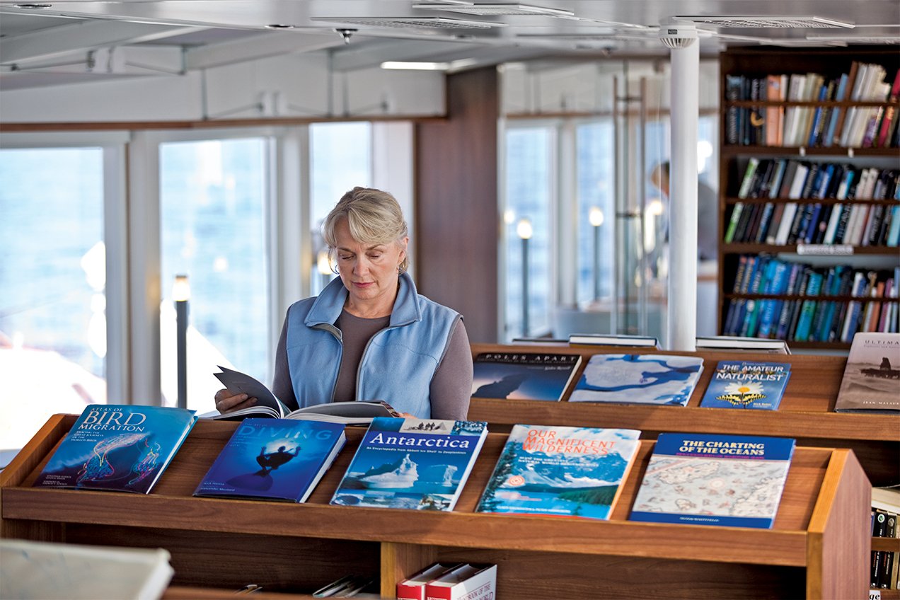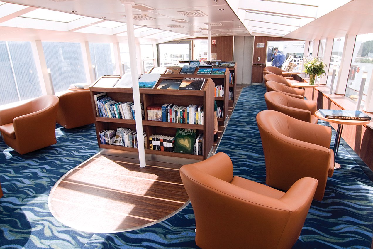 A session in the topside library with a good book, or with the book in your lap, eyes trained on the horizon.