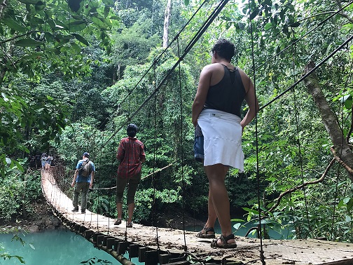 In the afternoon we disembarked to visit Yarapa River. Here, we went for a walk in the forest among large fig trees and palms. The trail took us to a clear spot in the middle of the forest. It was a swamp full of giant lily pads and wading birds! It was surprising to see lily pads in the middle of a forest ruled by giant trees and vines and epiphytes. Most trees are fruiting at this time and very often they host large flocks of fruit eaters, some are the amazing and colorful macaws! The rivers are teeming with wading birds, fish and pink dolphins.