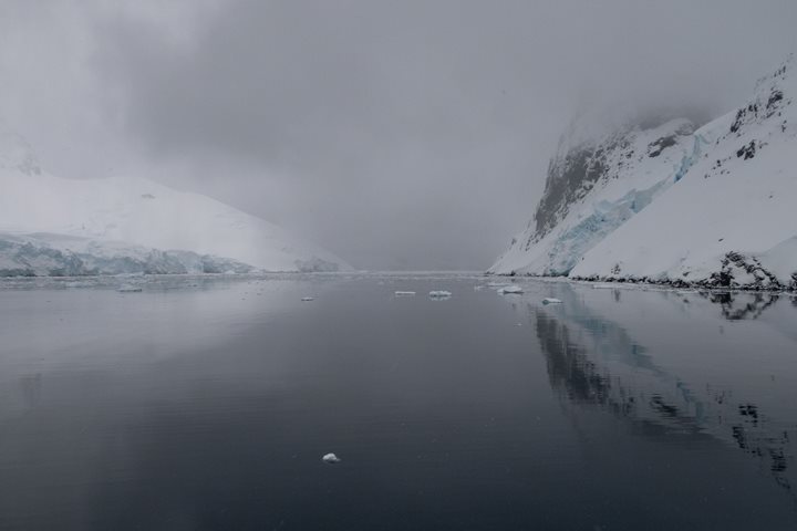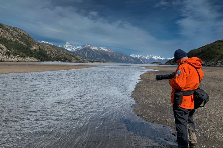 We spent a quiet night sailing down the Brunswick Peninsula. Those who woke early were treated to a beautiful sunrise in Keats Fjord. The conditions were so peaceful after the strong winds departing from Punta Arenas that many of the black-browed albatross were sitting on the water. We also saw southern fulmars, Magellanic penguins, and much excitement over a single blue petrel, which is not so common in these inland waters. We slowly proceeded deep into Agostini Fjord while enjoying our first breakfast onboard.
