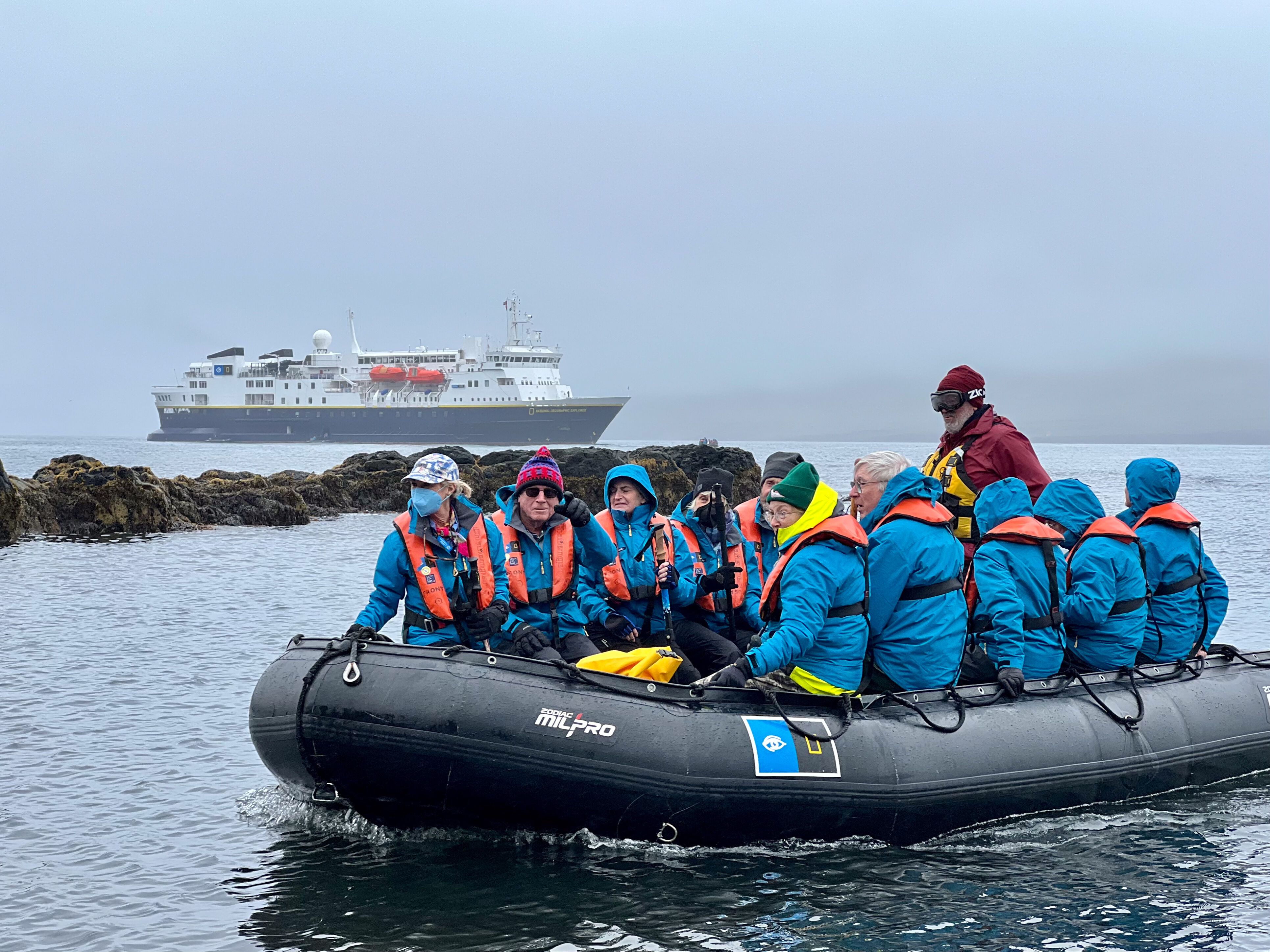 We awoke this morning still alongside the northern city of Akureyri. We scampered off National Geographic Explorer to begin various activities and explorations in the Icelandic countryside. We boarded our coaches for tours and made stops at a number of Iceland’s most popular natural attractions and features. Godafoss, the waterfall of the gods, was one of our first stops. Here we spent time watching the beautiful waterfall and the river as it rushed along the valley. Many scenic viewpoints are designed to give the best view of this waterfall. Folklore tells of a chieftain who decided that Iceland should convert to Christianity by throwing idols of the old gods into the waterfall. After a quick stop at the café at the end of the falls for coffee, we headed to Myvatn, our next stop. This beautiful volcanic lake is one of the best spots for birdwatching. The shallow lake is a great location to spot a number of duck species on their migratory paths, and the lake is home to trout and salmon. Myvatn also features a path with a number of scenic viewpoints for photography, and it has the second most popular geothermal pools in Iceland after the Blue Lagoon, particularly as it is just off the Ring Road. The next stop on our coach tour was Dimmuborgir, which is said to be the home of the Christmas vagrants, the Yule Boys. Dimmuborgir is one of Iceland’s most popular and highly visited attractions. Upon arriving, it was easy to see why, as volcanic rock juts from the valley below high into the landscape. Paths guided us from one photographic opportunity to the next. Near the entrance, we found a shop and outside café where visitors can enjoy a bite while looking over the beautiful lava fields and rock formations. After a guided tour here and a description of the hollow rock and openings, we took one last look before boarding our coaches and heading to lunch, which was prepared nearby for us. After lunch, we separated for activities. Some guests hiked up a volcano for an epic viewpoint of all the other areas we had traveled thus far. Others went to one of Iceland’s premiere spas, the GeoSea Spa, which rests on a cliff overlooking the sea. Still others visited a museum with a number of Iceland’s birds all meticulously taxidermized. At the end of the day, we arrived in the idyllic northern town of Husavik, where we reboarded the ship, which had traveled all day to meet us. After a lovely dinner, we disembarked at Grimsey Island, a small island in Northern Iceland where the Arctic Circle crosses. We spent a short period of time watching a seemingly endless number of puffins come in from the sea and land on the dramatic, steep cliffs with food for their chicks. We made our way to the Arctic Circle monument which is moved annually to realign with the circle itself. Here we observed the eider ducks that swim across the shoreline with their chicks in tow as arctic terns hovered above the small island, waiting for unsuspecting travelers to stray too close to their nests. This island is truly dramatic and wild, and our time here was unforgettable.