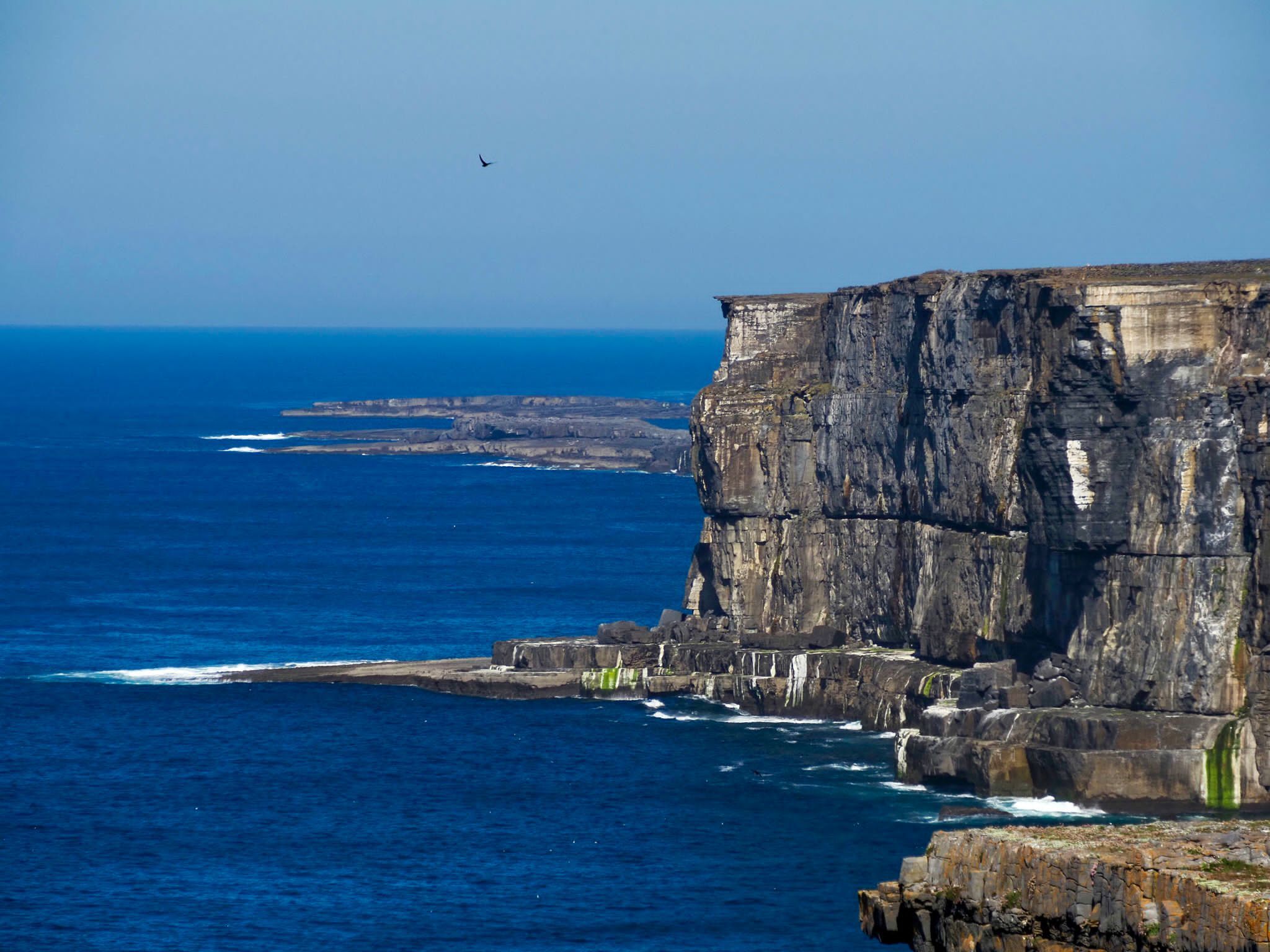There are few sights as splendid as a bird cliff in full flow, and Alkefjellet is about as good as it gets. Sat on the eastern side of Spitsbergen Island, the cliffs are made up of a dolerite intrusion into a sedimentary layer of limestone. The heat of the magma converted the limestone into a quasi-marble layer, and the resulting effect is a kind of reverse Oreo cookie appearance with a dark chocolate filling surrounded by pale cream biscuit. Having said that, the darker dolerite was today almost hidden beneath tens, if not hundreds, of thousands of Brunnich’s guillemots. These, the most common members of the guillemot family here in Svalbard, have just arrived for their annual breeding season, a brief two months spent on the rocks before returning to their default habitat of the open ocean. Weighing just 600g, or just over a pound, these delightfully smart in appearance birds sport a feathered dinner suit – white belly and black back with just two cute little swirls of white on the rump. Their voices cry in a joking laugh, belying their vicious way of fighting over the narrow rock ledges where they must find room to nest.