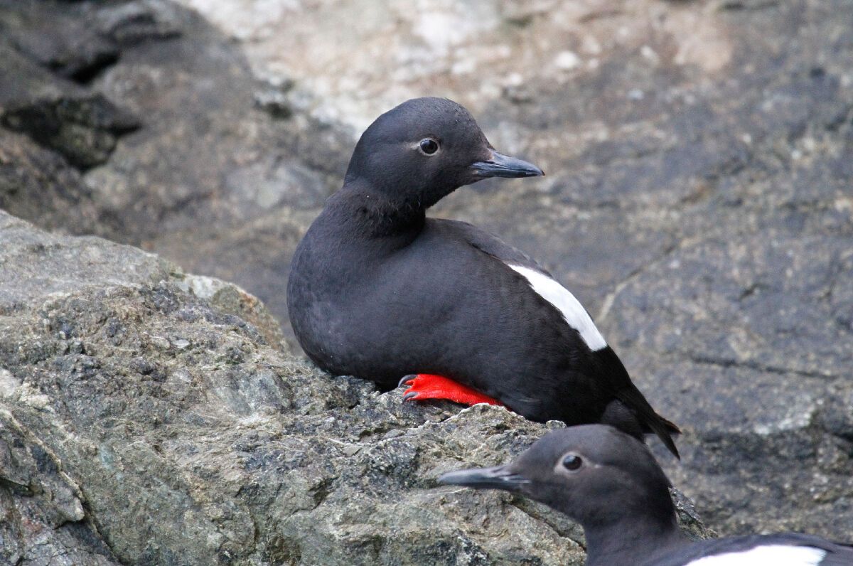 The weather was kind to us, and we had clear views, albeit with cold temperatures, by the time we got to Alkefjellet (translates to Auk Mountain). Here we dropped our Zodiacs and cruised spectacular dolerite cliffs, where thousands upon thousands of Brünichs guillemots choose to nest on precarious little ledges all over the sheer cliff faces. Nesting “shoulder to shoulder” and plumed in contrasting black and white, these birds impress with their sheer tenacity to reproduce in such an inhospitable landscape, for these cliffs are patrolled by predators looking for an easy meal. Sure enough, Arctic foxes were spotted at the base of the cliff, scavenging any dropped eggs, or injured birds.