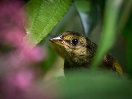 Later in the afternoon we visited Nauta Creek, a minor tributary of the Marañòn River. Our skiffs took us to the interior to look for wildlife. The first creature we found was a female sloth resting quietly at a cecropia tree. We moved slowly, paying attention to all the sounds we could hear and looking at the canopy to find animals. We saw many types of birds, such as Amazon king fishers, terns, tanagers, herons, flycatchers, and barbets. We also found a caiman lizard basking on top of a branch. But the highlight were the playful monkeys we saw, and four creamer woodpeckers knocking the bark of a tree.