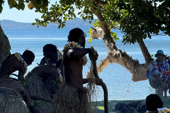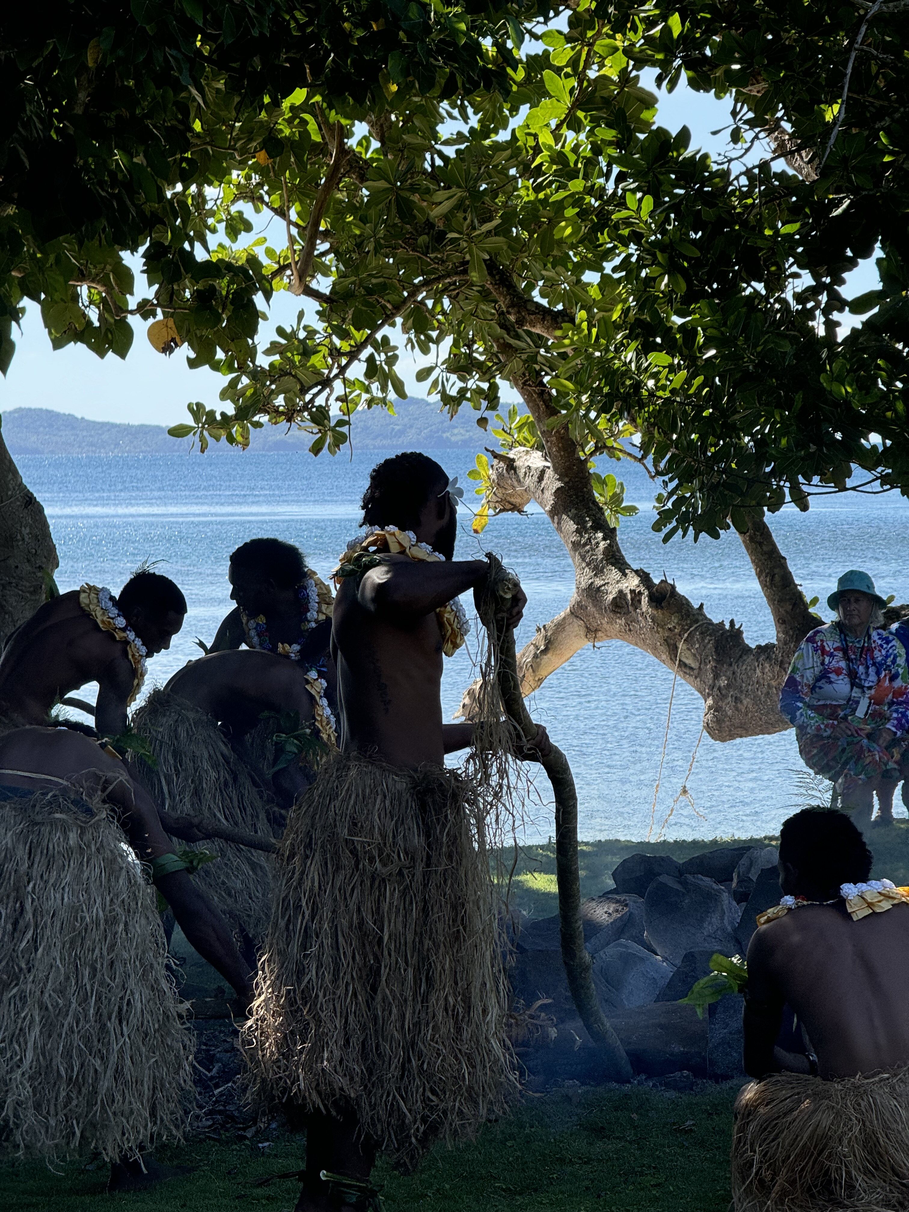 The birding group’s rainforest trek quickly shifted as heavy rain led us to join the hikers heading to the Rom dance. Spirits were high despite the downpour, but an overflowing river blocked our path, forcing us to turn back. Laughing and drenched, we returned to the ship for lunch, embracing the unpredictability of the island life.