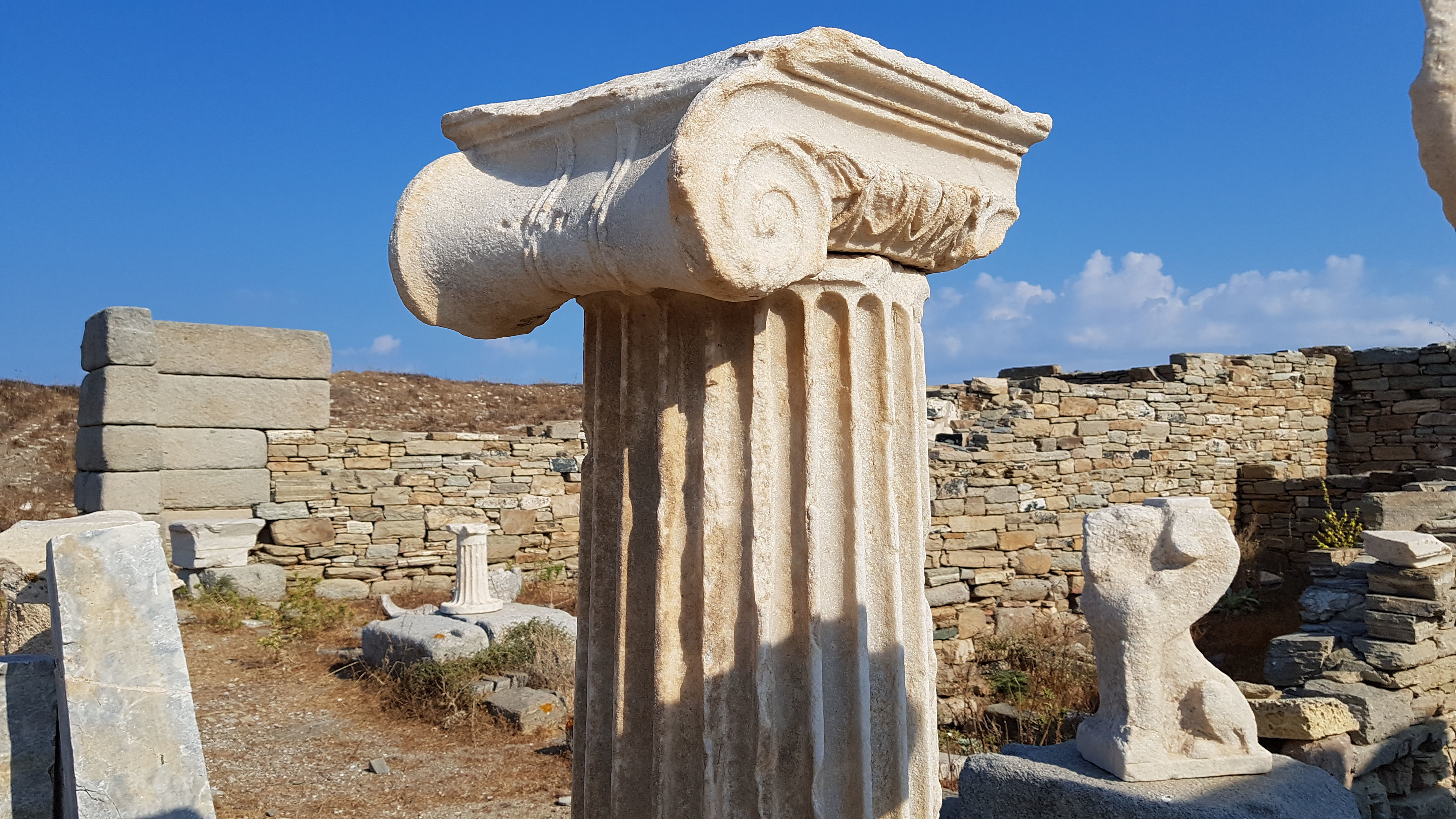 After our trek to the monastery, we had free time in the beautiful unspoiled village of Chora. Here, the brilliant white alleys with their brilliant blue doors and windows were covered over with blooming magenta bougainvillea and white, red, and pink oleanders. It was deliciously beautiful. On our walk, I noticed an ancient Roman tombstone strategically placed in the lintel of one of the houses. (They really did reuse everything!) Once back in Katapola, many of us went for a swim in the cool blue Aegean.