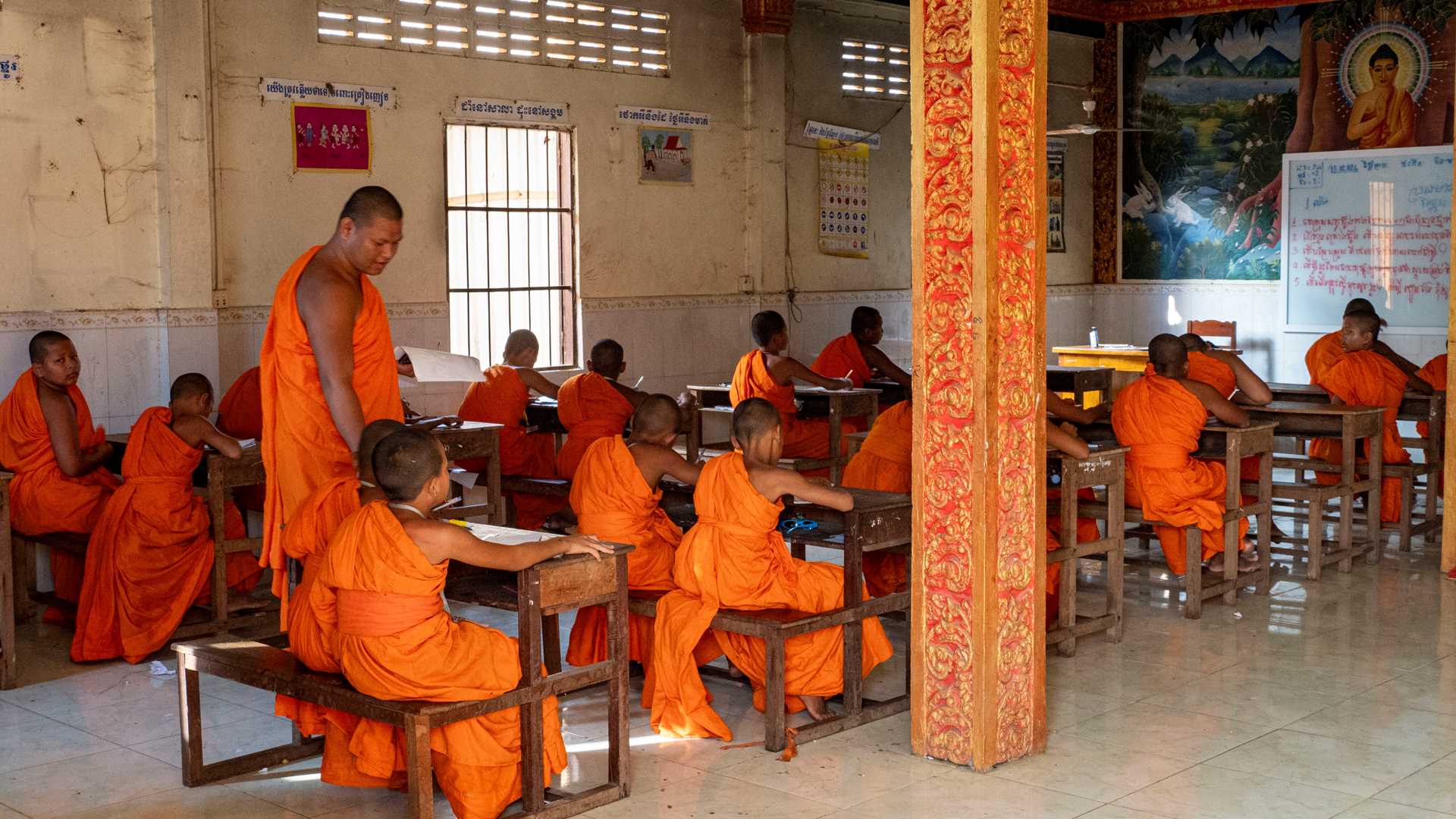 On our last day aboard the Jahan, we spent the morning exploring the town of Angkor Ban. This small town is significant because it is one of the few towns spared the ravages of the Khmer Rouge. The homes are still the original buildings, some dating back to the 1800s. Modern conveniences like electricity have arrived, but life goes on in much the same way it has for centuries. It was such a joy to walk among the local people, who welcomed us to the community. We happened upon a wedding, and our guests were invited to be photographed with the bride and groom.