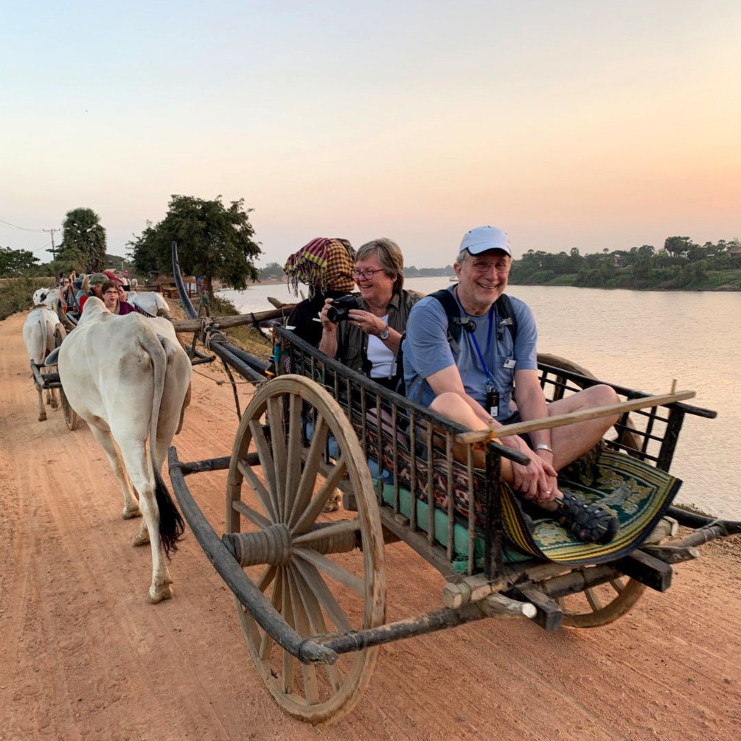 As the afternoon began cooling off, we disembarked Jahan at our new destination of Koh Oaknhatey, a small Island in the Mekong not far from the capital city Phnom Penn. A collection of local tuk-tuks, motorbikes with transport carriages conveyed us to our destination of a local silk farm. After a demonstration of the ancient craft we had the opportunity to purchase some of the silk products.