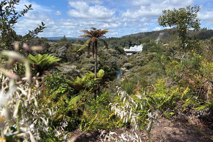 Active restoration was essential at Glenfern to more rapidly establish a pristine native bush habitat that would otherwise take centuries to develop. The sanctuary has a two-kilometer, predator-proof fence that provides protection from cats, pigs, and rats; trapping and monitoring programs are ongoing to ensure the peninsula remains free of pests, enabling endemic species to breed and flourish. Rodney Ngawaka from the local Māori iwi greeted us at Sunset Rock lookout, where panoramic views extend across Hauraki Gulf. He shared Aotea/Great Barrier’s history, the people and stories behind landmark and island names, and the importance of the Glenfern restoration to the wider community.
