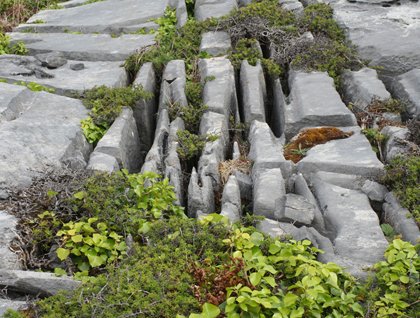 Small mini buses took us to our morning’s main visit, the prehistoric monument known as Dun Aengus. Located atop a 300-foot cliff on the south coast of the island, archaeological excavations have revealed activity on this site over a 2,500-year period. The main occupation was in the late stages of Ireland’s Bronze Age. A multi-period and multi-functional site, this ranks as one of the most impressive prehistoric monuments in Europe. The island is a karstic area with text book examples of limestone pavement, clints and grikes, fine examples of which we examined as we traversed the landscape. It has a unique combination of plants consisting of representatives from temperate, Mediterranean, alpine and arctic areas – a veritable botanical metropolis.
