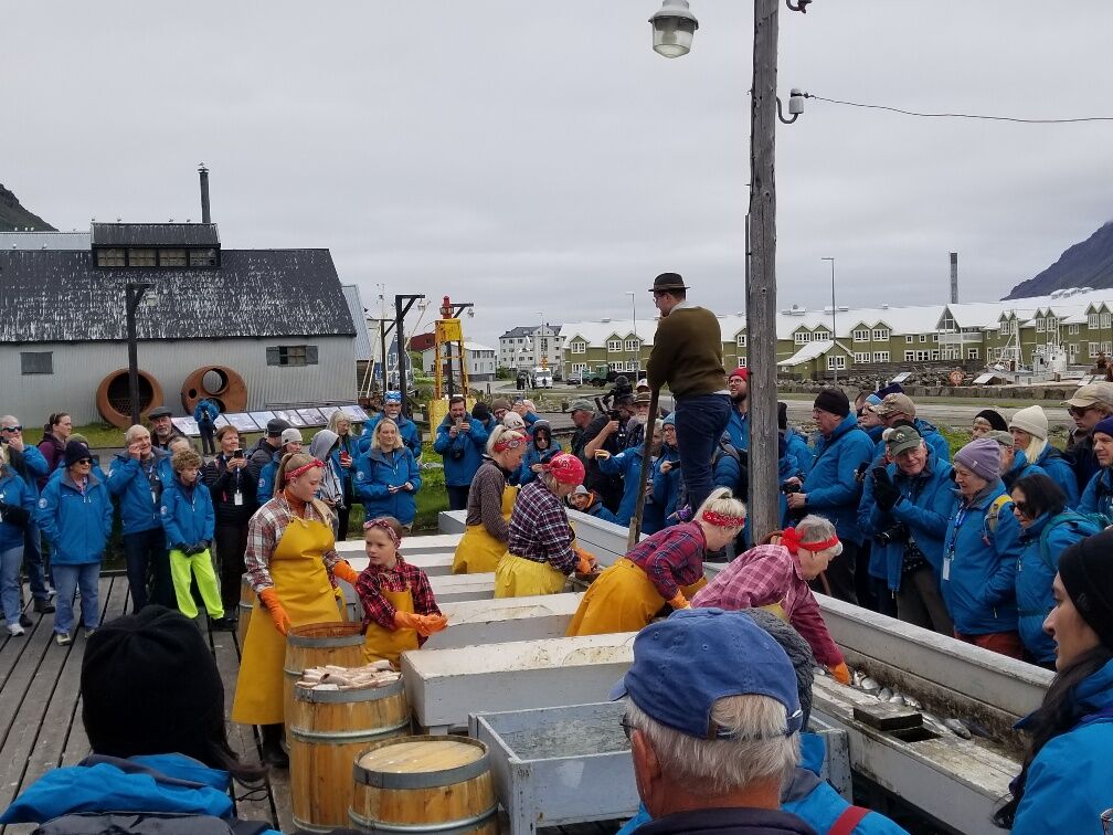 Our day began in the Westfjords of Iceland aboard National Geographic Resolution . Once on land, we hiked up to the stunning waterfall Dynjandi, one of Iceland’s most beautiful waterfalls. Dynjandi (which roughly translates to “thunderous”) is a powerful, wide-spreading waterfall that has a series of falls below as the water makes its way to the ocean. Our long hikers saw a whale during their walk into the fjord, and some seals popped their heads up above the water along the shoreline. The hotel team prepared a tasty waffle teatime for us to enjoy as we sailed past Látrabjarg, the easternmost point of Iceland, full of birds and life. Greg Winston shared his experiences as a National Geographic photographer, and our guest speaker Ragna Árnadóttir gave a presentation on Althing and the history of the Icelandic parliament. The talk was extremely interesting and gave great insight into Icelandic culture and how the democracy has developed over the years.