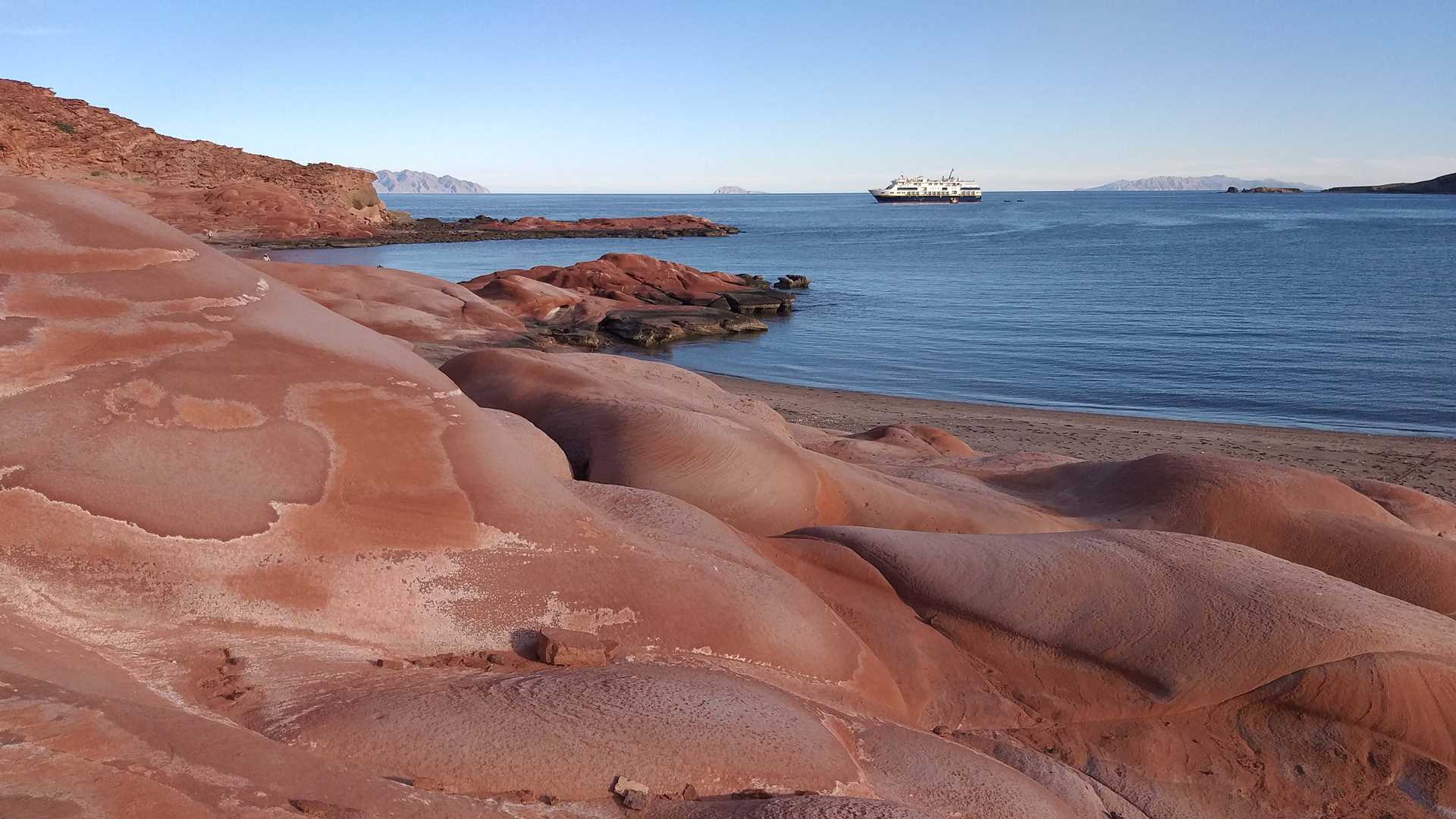 A beautiful sunrise and mountains bathed by its reddish light were the view today during our navigation in the San Jose Channel, between the peninsula of Baja California and San Jose Island. The ship anchored in front of Arroyo Encantado so we could enjoy hikes and encounter the magnificent insular vegetation.