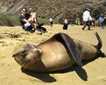 We awakened aboard National Geographic Sea Bird on approach to the dock in Astoria, which we would use as our springboard for the day’s activities. It had begun raining in the night, however there was a bit of clearing during sunrise, and the eastern sky glowed orange and pink and yellow through the streaks of clouds. The rain returned, a propos for our visit to Fort Clatsop, where the Corps of Discovery spent a very damp and cold winter of 1805-06. After a brief visit and orientation in the museum, we had the opportunity to visit a replica of the fort. There were several humorous comments comparing their bunks with the cabins onboard. After a walk through the surrounding forest among red alders, Douglas firs, and Sitka spruce, we boarded the buses, made a brief stop at the Astoria Column, and arrived at the Columbia River Maritime Museum where we spent the rest of the morning learning about the challenges of navigating the confluence of the Columbia River and the Pacific Ocean.