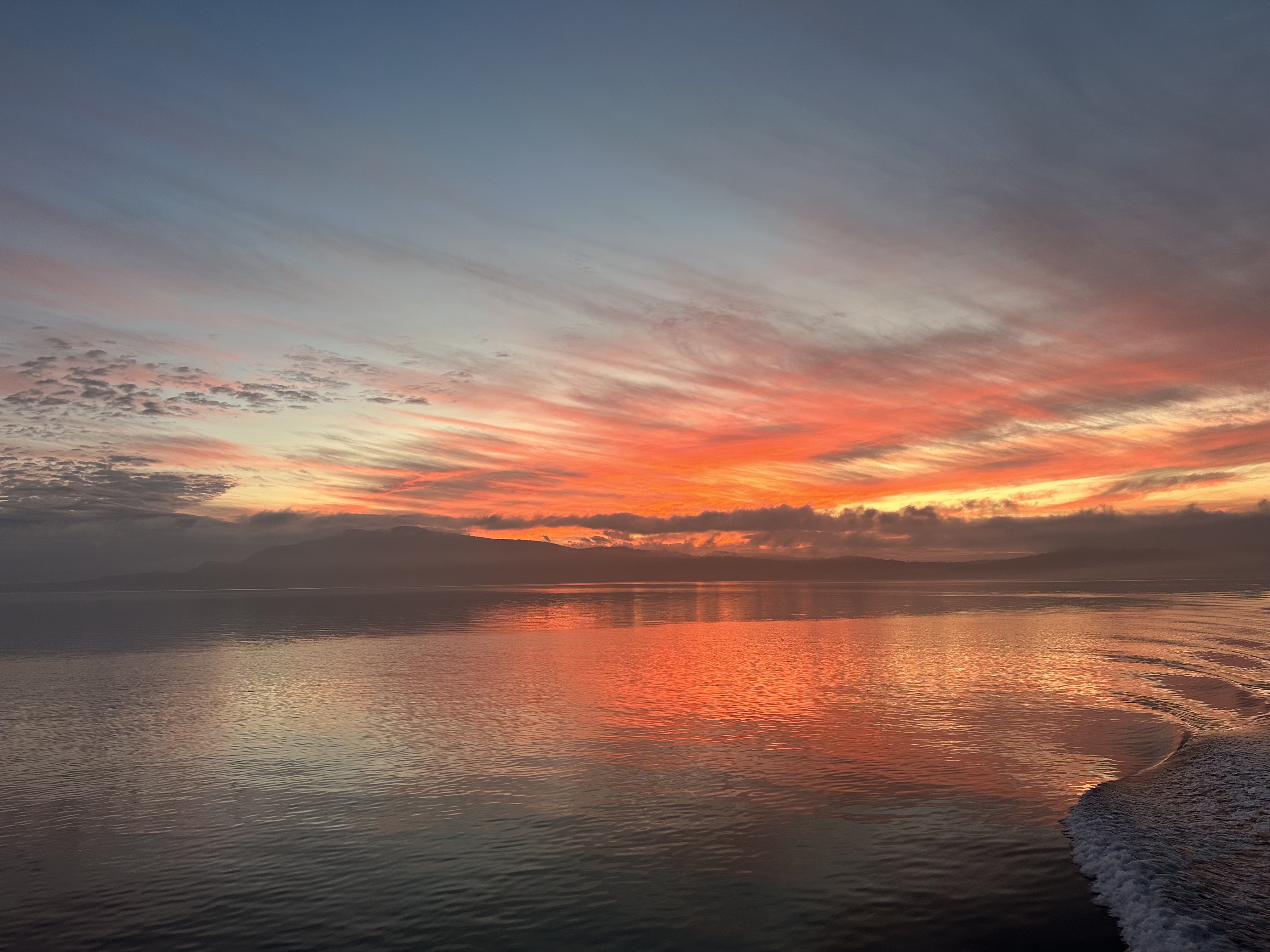 In the afternoon we drove across the Astoria bridge to Washington, all the way out to Cape Disappointment to view the Pacific Ocean and visit the Lewis and Clark interpretive center. We also had an opportunity to walk through the large Sitka Spruce trees in the coastal temperate rainforest and to dip our feet in the Pacific Ocean. Once we finally returned to National Geographic Sea Lion, we left the dock and travelled out to the waters where the Columbia River meets the Pacific Ocean. We felt the gentle rolling of the ocean swell and listened to the distant chime of bells on the navigation buoys.