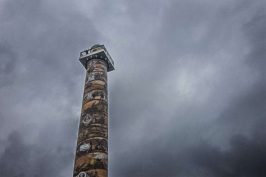 Our first stop during the morning was Fort Clatsop, the reconstruction of the 1805-1806 winter fort of the Corps of Discovery. We saw a film about the winter at Fort Clatsop and had some interpretation before visiting the replica of the fort and a walk down to the landing where the Corps’ canoes landed. We then headed back to Astoria for a visit to the 125-foot tall Astoria Colum. The exterior of the column is decorated with a spiral mural depicting the history of the area, beginning with American Captain Robert Gray who was the first sea captain to negotiate the Columbia Bar and who claimed the Oregon Country for the United States. Some guests climbed the interior stairway of the column to launch balsa-wood airplanes from the top.