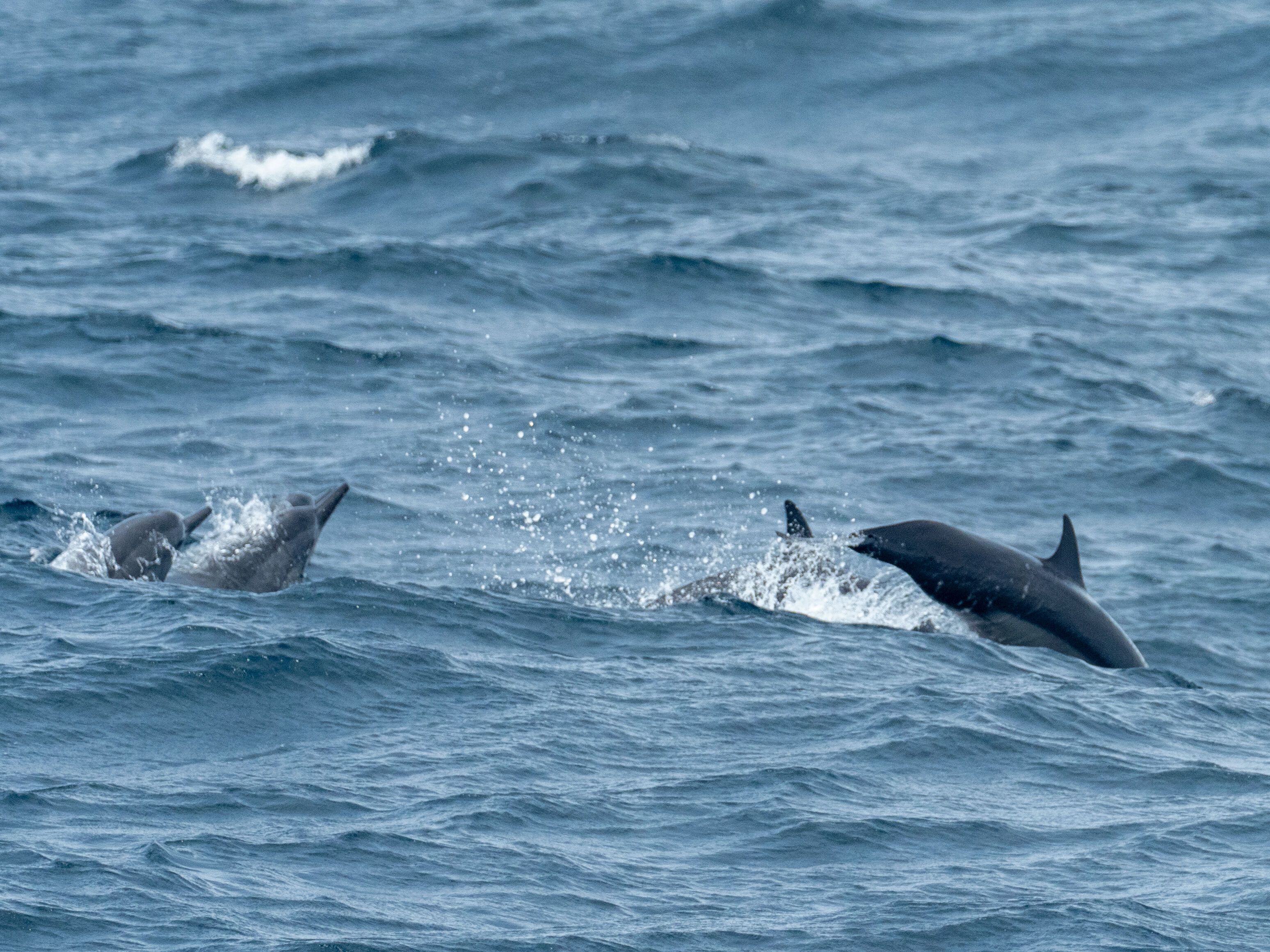 The certain highlight of the day was a big pod of spinner dolphins. This group of well over one hundred dolphins was energetic and at times, even spinning. They appeared to be chasing schools of flying fish, but towards the end of the encounter, some of them made their way to the bow and went for a ride. It was another great day onboard National Geographic Orion!