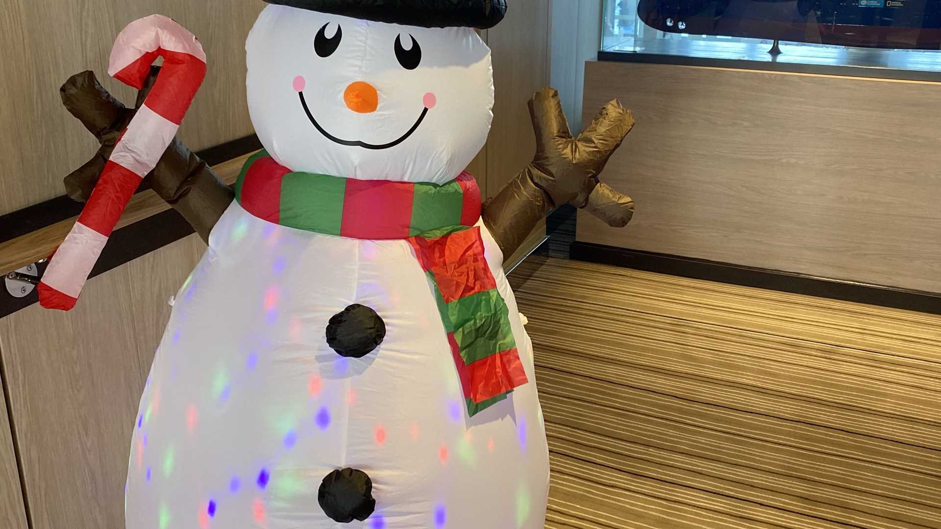 Christmas is coming to the ship! Almost overnight blow-up snowmen and decorations filled the hallways and bars. Sometimes, when one spends so much time in snowy places, as I do for ten months a year, it is a surprise to see snow featured as a special thing. And yet, of course it is very special. Without it, there would be no glaciers or ice caps. We would be able to sail the ship almost up to the south pole as the continent itself is only held together with the snow/ice combination.