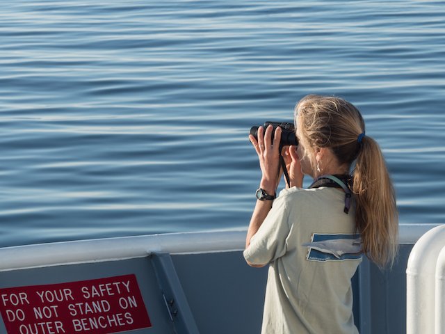 Continuing our journey sailing south in the Sea of Cortez, the National Geographic Sea Bird awoke to a brilliant sunrise lighting up the mountains around us. Cruising through beautifully calm waters, we set out south of Isla del Carmen in search of marine mammals. Starting with an early sighting of charismatic bottlenose dolphins, there was no shortage all morning of incredible wildlife moments.