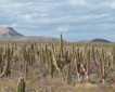 National Geographic Venture neared Isla Montserrat during the first daylight hours. One of the most wonderful things to see in the Gulf of California is the Sierra de La Giganta graduating in color from red, to pink, and then orange as the sun breaks over the horizon. We could also see the moon hiding in the clouds just before sunrise.