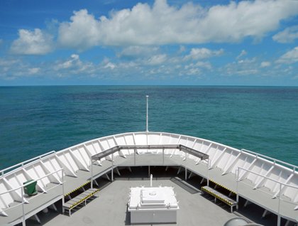 After a very full day yesterday, which included a speedboat ride up the river, followed by a wonderful airplane ride up to the Kaieteur Falls where we walked to the falls and along the river, then we returned by another airplane ride and speedboat trip back to the ship, everyone was ready for a day at sea to catch up. We spent the day with presentations on the rain forests of South America and the ethnobotany of rain forest plants. In the afternoon we screened the film Papillion to prepare us for our visit to Devil’s Island in French Guyana if a few days. The rest of our day was spent reviewing our many photographs from our trip to Kaieteur Falls and enjoying watching the sea pass beneath the keel. We were sailing against the South Equatorial Current, which extends a few degrees into the Northern Hemisphere and noticed that the ship was being set at a rate of nearly 1 knot astern. This current continues on westward to carry warm equatorial water into the Caribbean and is one of the most important currents in the equatorial Atlantic.
