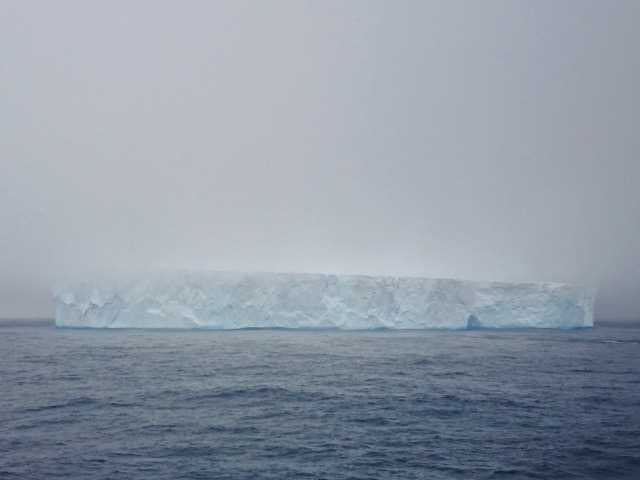 It was foggy now, a sort of magic.  A bird appeared, then another.  Then a huge, tabular iceberg, rectangular, bigger than a football field, higher than a tall house.  Not a giant iceberg, some are dozens of miles long.  Well, it suddenly appeared if you were not looking at the radar screen.
