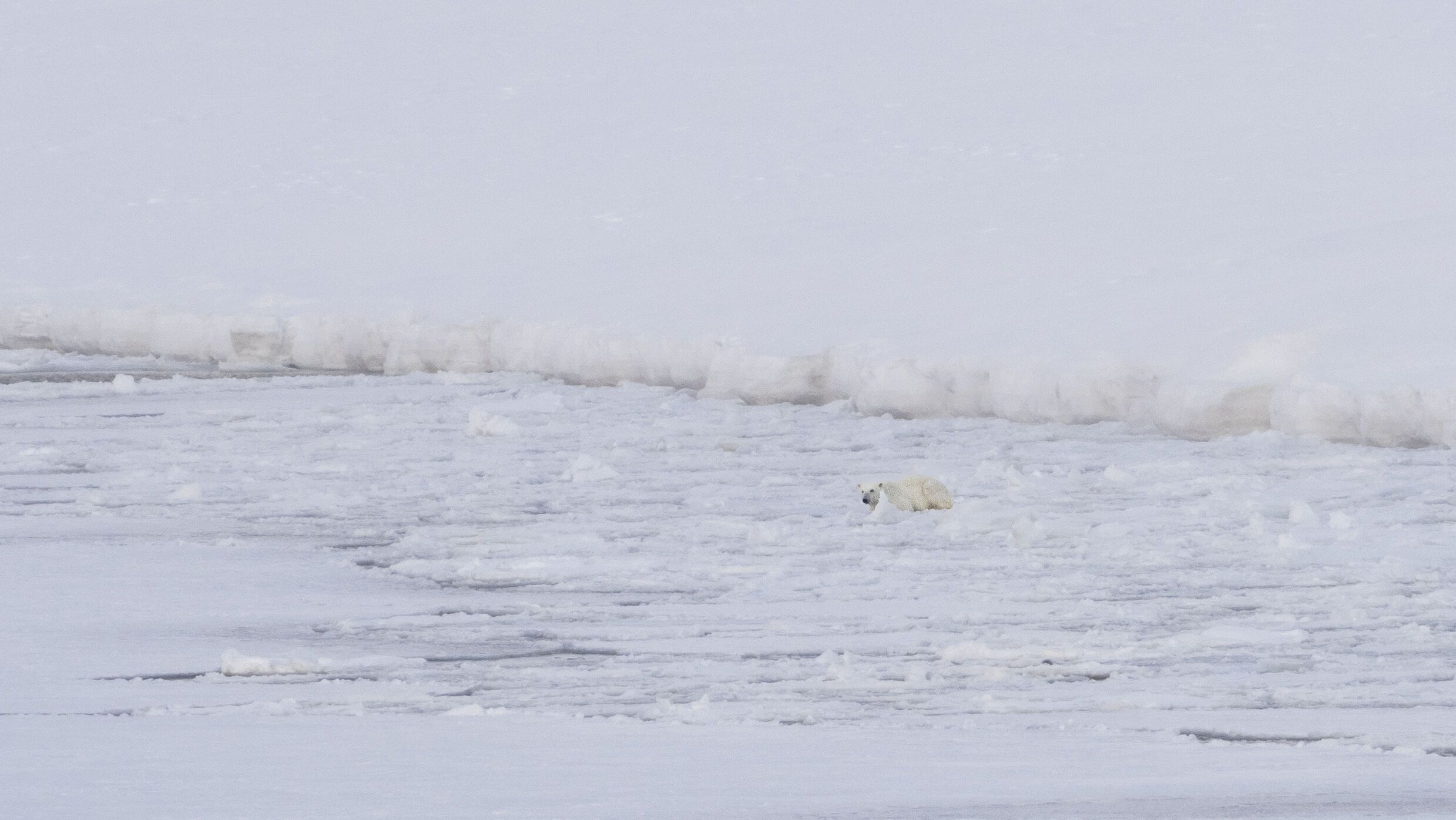 Today was a day spent exploring the pack ice 12 miles offshore from the northern tip of the Svalbard Archipelago. Everyone spent time on the bow and on the bridge looking for wildlife. We were rewarded with an amazing encounter with a curious polar bear and several sightings of bearded seals. There was a presentation in the Ice Lounge from our undersea team and another to learn more about polar bears.