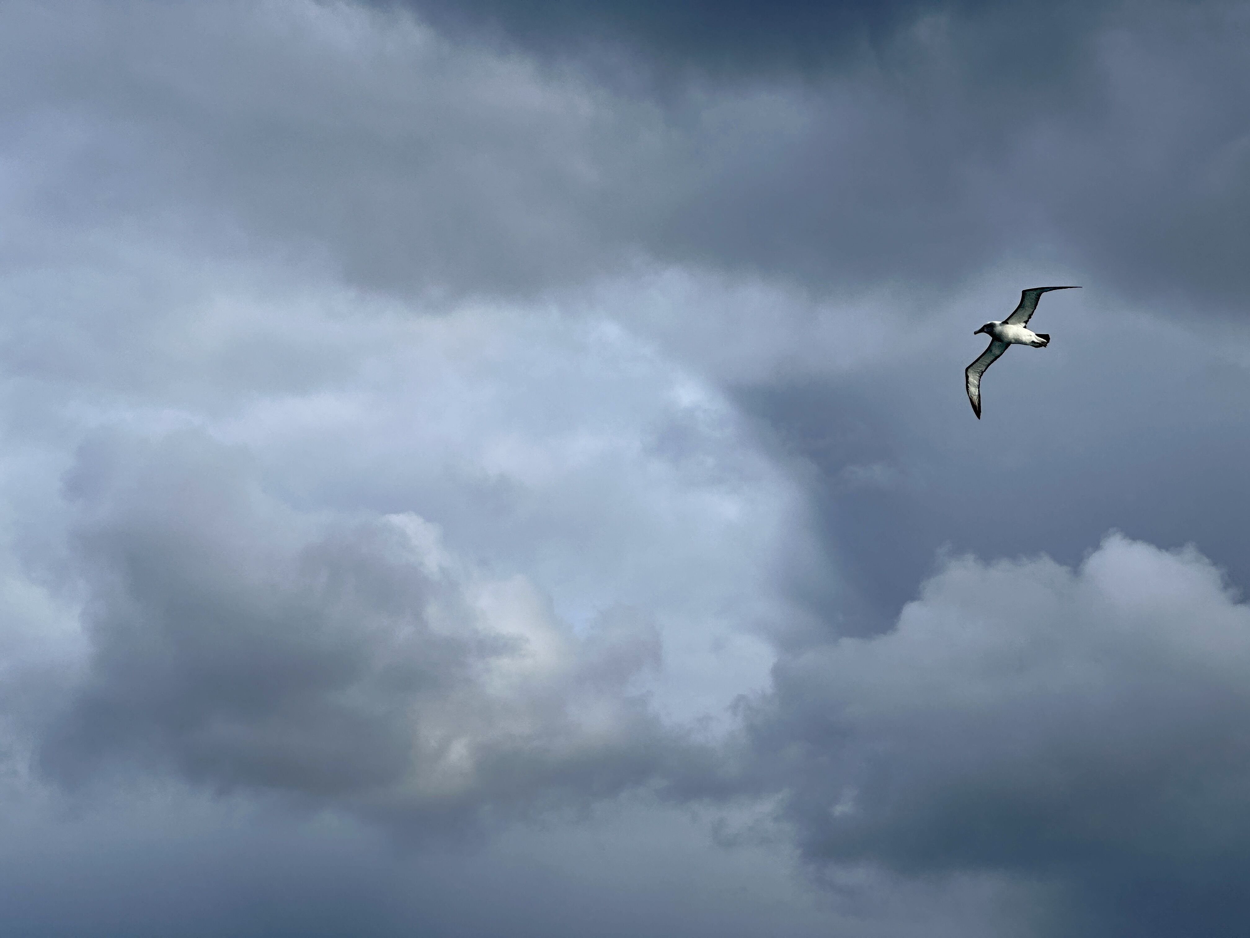 National Geographic Orion began its transit down to the Sub-Antarctic Islands of New Zealand today. We dropped off our pilot in the town of Bluff late last night and began sailing towards the Auckland Islands. In between the rolling ocean swells, we watched and photographed a number of exciting bird species, such as the white-capped albatross.