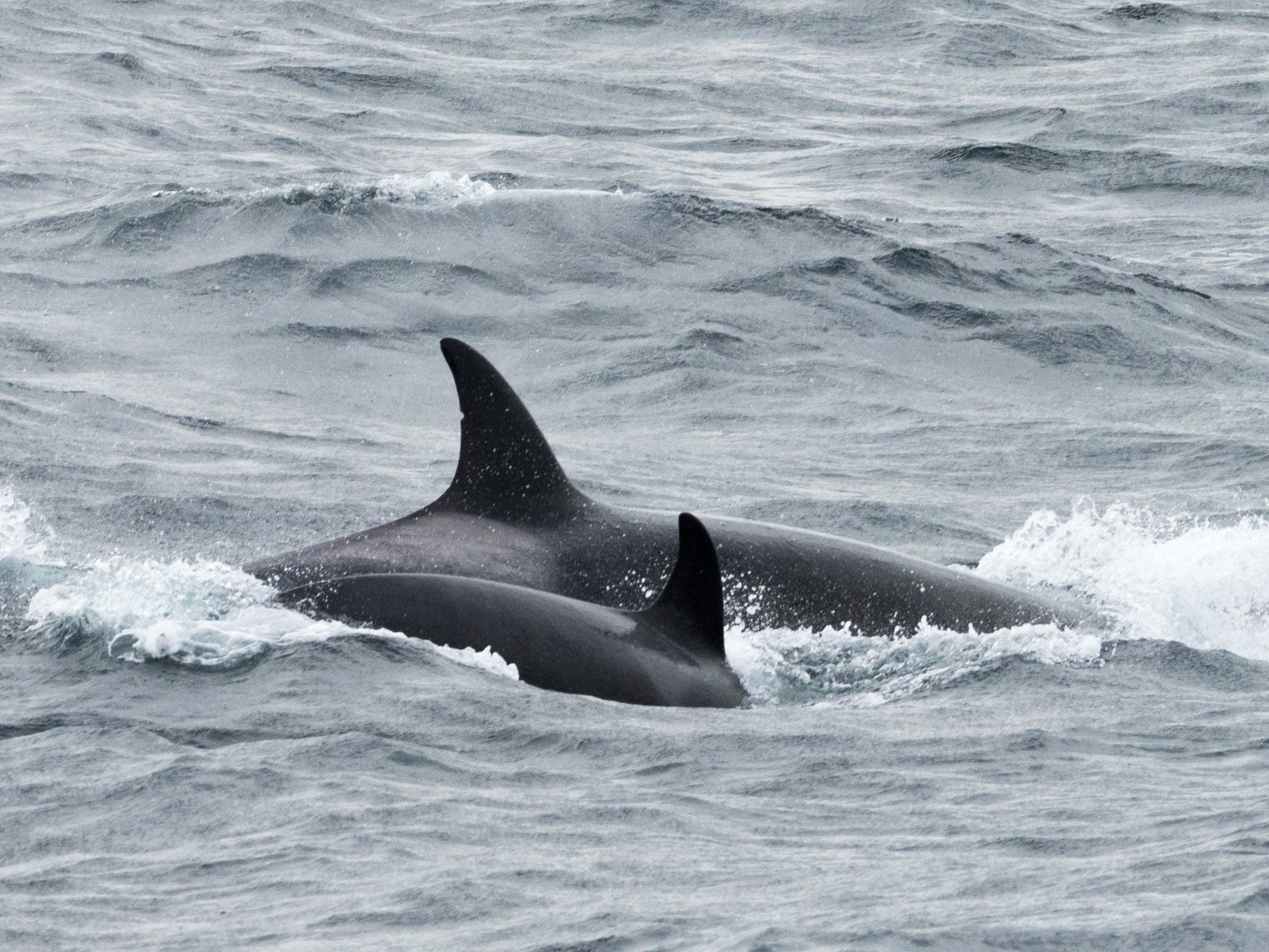 For the first few days, we were cruising back and forth on the calm, leeward side of the islands. Albatross and other seabirds surrounded the ship continuously and Peale’s dolphins repeatedly came in to bow ride. We even encountered a pod of killer whales and spent quality time with these top predators. Our sister ship, National Geographic Explorer, also provided a fun interlude. After disembarking their guests, they were able to make a supply run to us for essentials. They passed off some fruits and vegetables, some technical engine equipment, and an entire Zodiac of TOILET PAPER! I’m not sure if it was necessary or a great joke, but something we all still talk about!