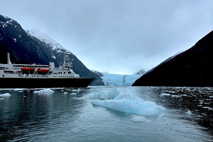 Yes, we were isolating ourselves from the rest of the world, but not from each other. We could still do whatever we wanted, just onboard. Many became “Nolanites,” circling the upper deck getting exercise while enjoying some fine weather. Full gourmet dinners continued, cocktail hour was even more popular, and many guests formed their own groups doing various things they love. We then anchored for a few days in a sheltered bay and had many presentations to entertain ourselves and learn even more about the region.