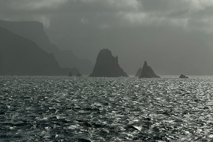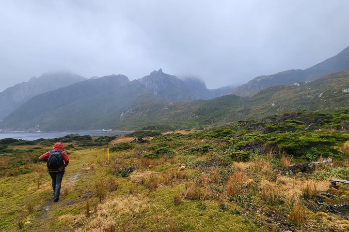 For the first few days, we were cruising back and forth on the calm, leeward side of the islands. Albatross and other seabirds surrounded the ship continuously and Peale’s dolphins repeatedly came in to bow ride. We even encountered a pod of killer whales and spent quality time with these top predators. Our sister ship, National Geographic Explorer, also provided a fun interlude. After disembarking their guests, they were able to make a supply run to us for essentials. They passed off some fruits and vegetables, some technical engine equipment, and an entire Zodiac of TOILET PAPER! I’m not sure if it was necessary or a great joke, but something we all still talk about!