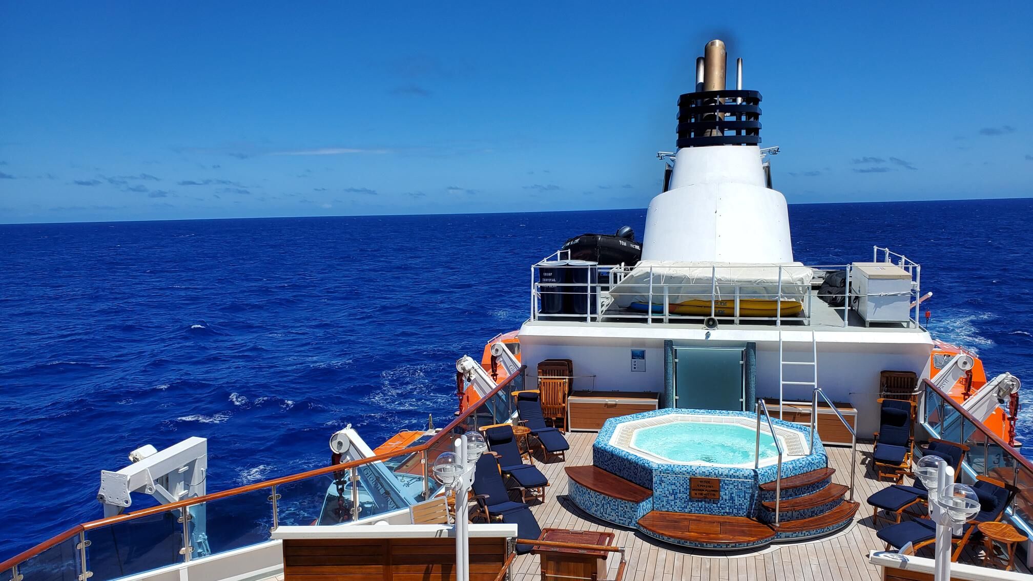 Our transit to Rarotonga continued with blue skies and relatively calm seas. A steady breeze kept the temperature comfortable on deck, but not strong enough to affect our navigation. Wildlife was sparse with a few seabirds spotted. The crew and staff kept us more than occupied with a variety of activities to fill us with knowledge and yummy food and drink. And to end the day, a gorgeous sunset and delicious South Pacific BBQ dinner outside on the back deck. Tomorrow-the Cook Islands!