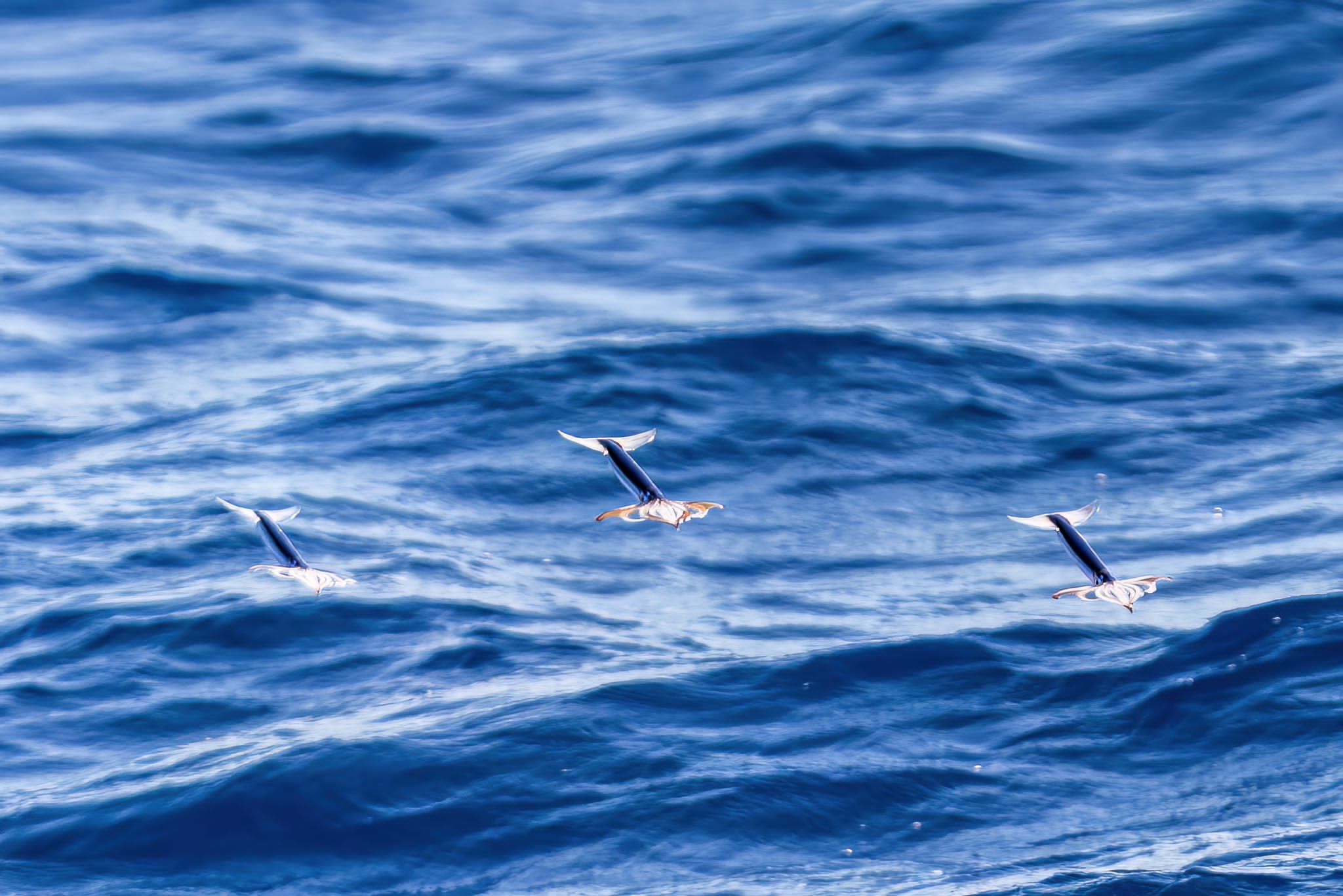 Our plans for a photography presentation were delayed by an unexpected sighting of several large groups of flying squid. These are very rare to see. They use jet propulsion to send themselves into the air to evade predators. We watched in awe as their delicate bodies soared for a few seconds before disappearing underwater again. Afterwards, Mike Rigney carried on with an iPhone and Smartphone photo talk, and we had lunch.
