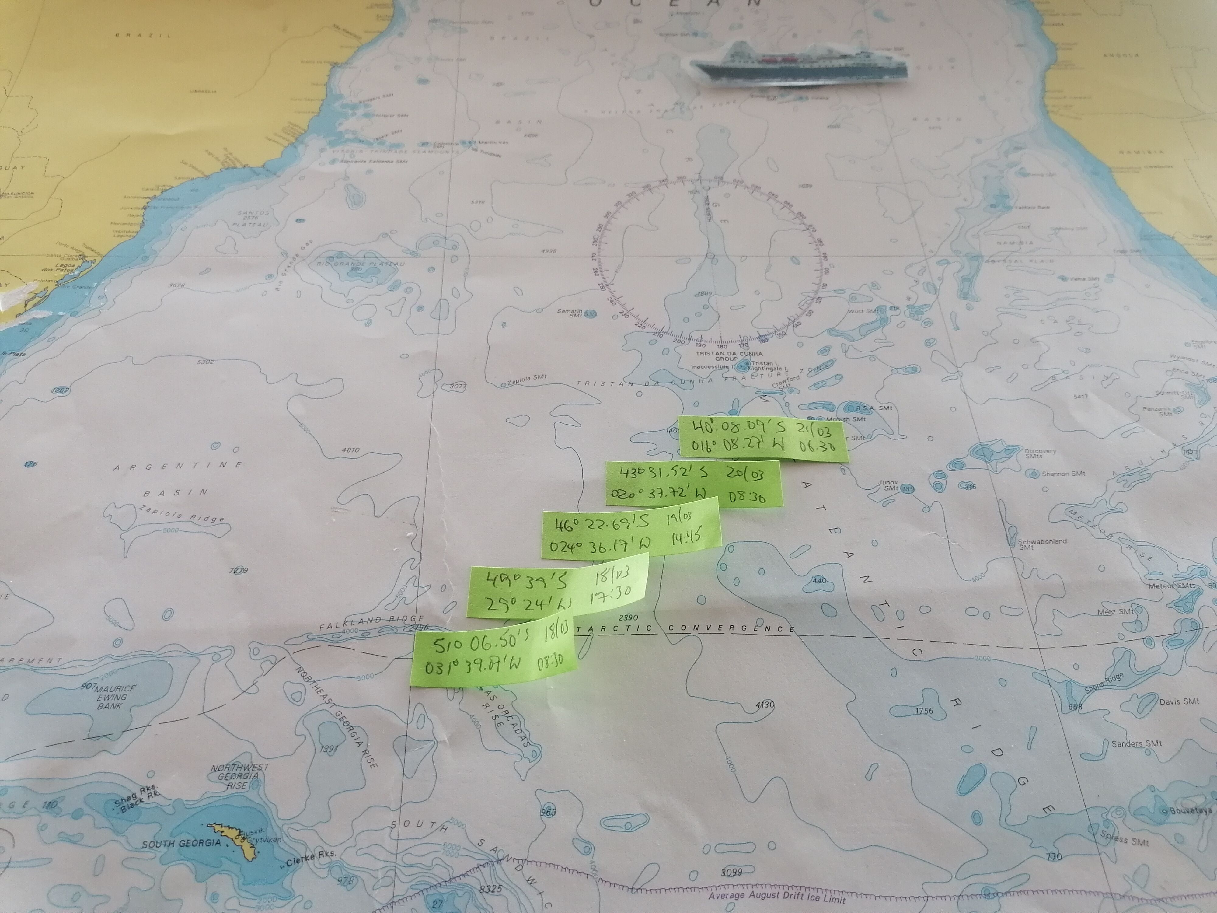 We have been sailing for two days now. Tristan da Cunha is behind us, and the island of Saint Helena is ahead of us. We are still too far to see it, but that does not stop us from squinting into the distance from time to time, wishing it closer and closer.