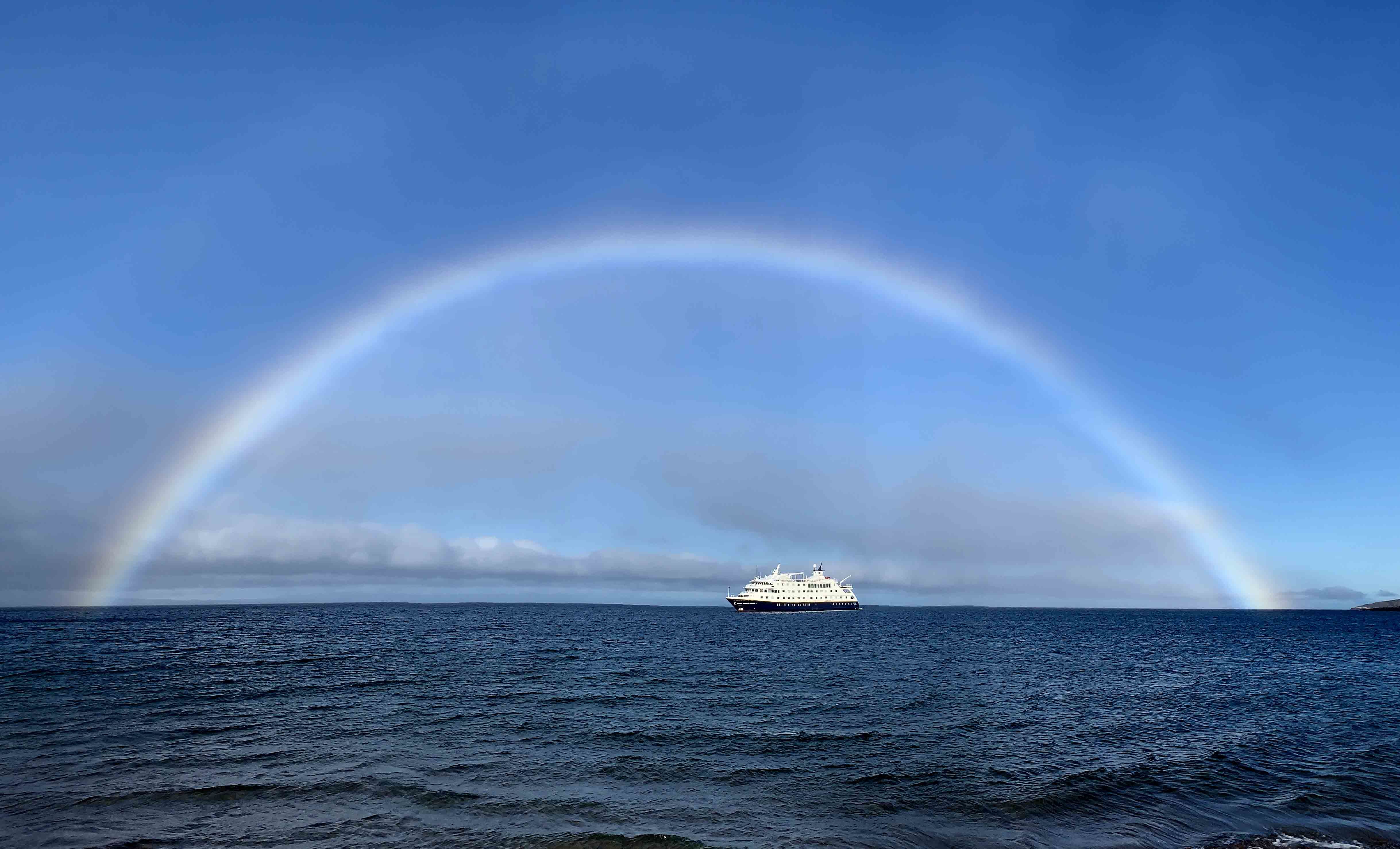 While enjoying dinner aboard, a dense fog surrounded the ship as we approached the Shag Rocks, the visible part of a rise in the Scotia Sea around this part of the vast Southern Ocean.