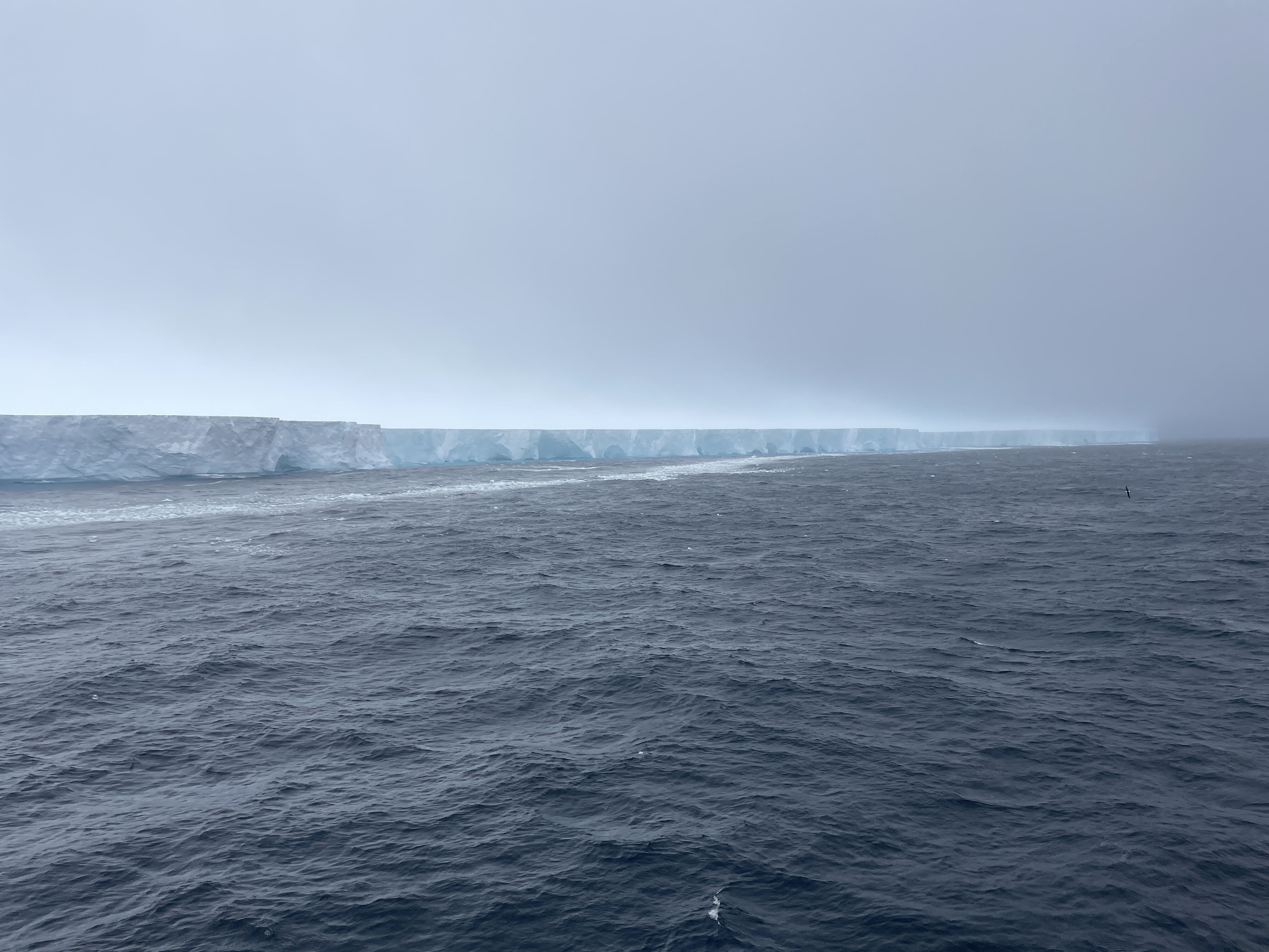 We woke up this morning next to the largest iceberg that currently exists on the planet, A23a. It was a foggy morning, but as we approached the large tabular iceberg, the microclimate of this massive piece of ice lifted the fog enough for us to see the ice edge that kept going as far as the eye could see. This was the most momentous event of our day as we headed toward the South Orkney Islands, and the fog moved in and stuck around the ship for the rest of the day.