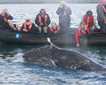 Light winds mean more sail, and at 0900 the crew was aloft in the rigging, preparing the rest of the square sails and the jibs. Chief Officer Steve Tarrant, an instructor at the Maine Maritime Academy, gave a “play-by-play” explanation of the setting of the sails, which turned the complex and random lines and rigging into a well-organized and coordinated machine.