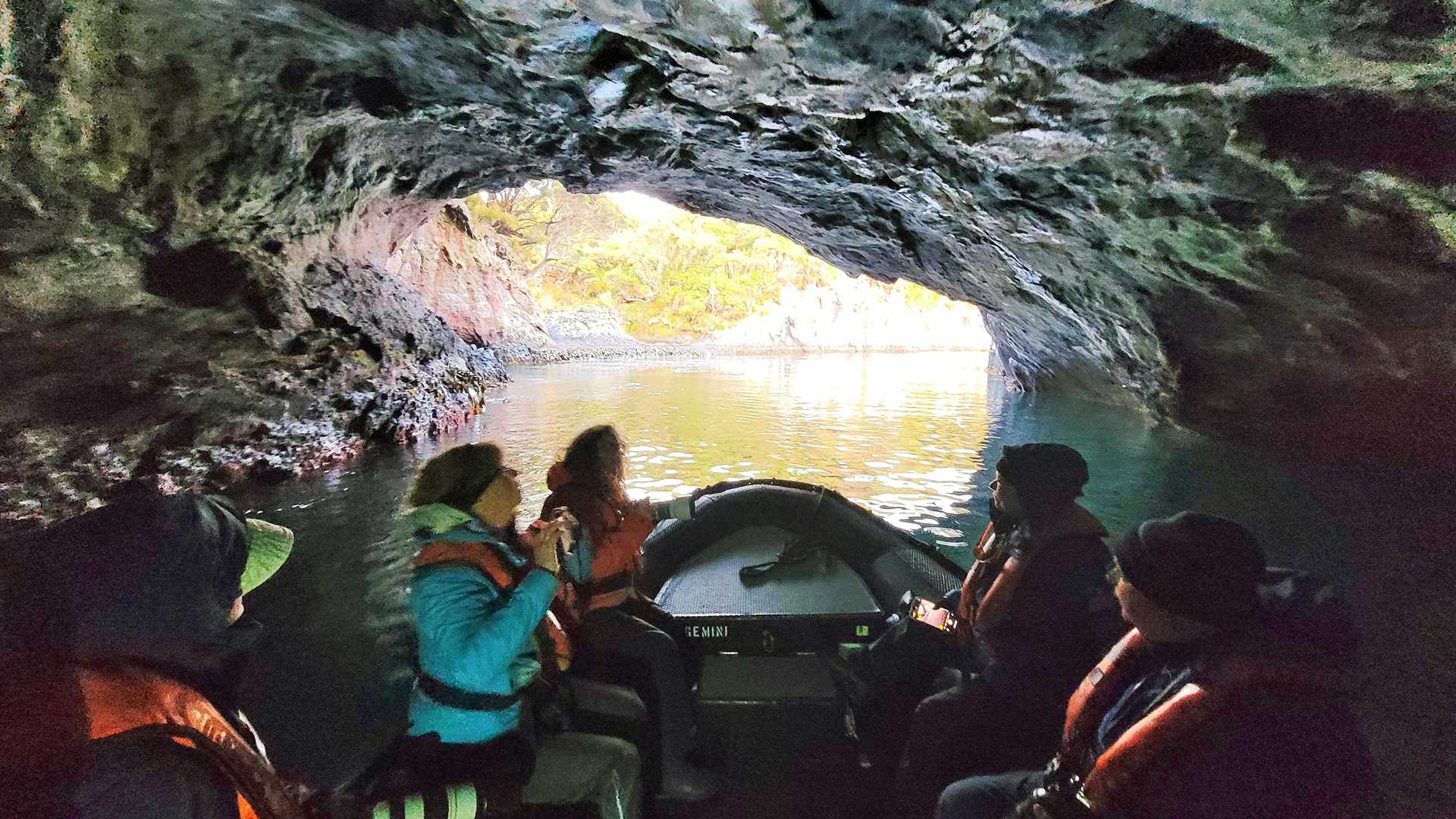 Our fulfilling day began just before sunrise as we were readying our Zodiacs for an exploratory cruise in Musgrave Inlet on Auckland Island. Conditions were near flat-calm, a welcome reprieve from days past, as we set out to take in this magnificent sliver of shoreline. Striking columnar basalt cliffs comprise the shoreline, with the dense, lush Southern Rata Forest blanketing the landscape. Several magnificent sea caves can be taken in along the shoreline, as well as a myriad of nesting seabirds and terrestrial birds.