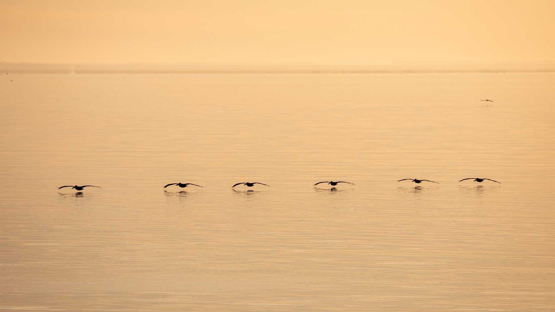 For the second day in a row, we awoke underway with a beautiful sunrise and gray whales surrounding us as we headed south to Bahía Almejas. Pelicans and double crested cormorants flew low, their reflections mirrored in the calm morning water. Every so often a curious California sea lion would pop its head out of the water.