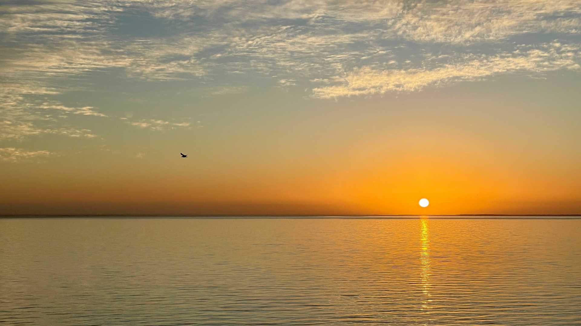 The morning began with a warming sunrise sparkling across the glassy calm water of Bahia Almejas. After breakfast, there was much excitement in the air, as we had perfect conditions for another round of whale watching with the local pangueros. The first stop was at a sandbar filled with seabirds, mostly cormorants and California brown pelicans, with a few gulls in the mix too. It was quite spectacular listening to them take flight, as they ran across the water and flapped their wings to venture off in search of a fishy meal. Then as we rounded the sandbar, the heart-shaped mist from the exhalations of several gray whales could be seen ahead. The whale watching was fantastic; gray whales were spyhopping, fluking, blowing bubbles, and rolling. Some guests even experienced a whale swimming alongside — or right underneath — their panga.