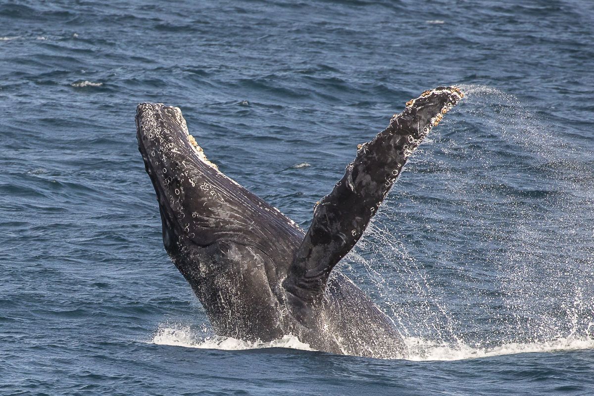 Today we woke up in the northernmost part of Magdalena Bay. In the morning, we went whale watching at Boca de la Soledad, where we came across a mother and calf. Later, we went to Estero Chivo at high tide, where we observed a variety of birds. We were particularly interested in the numerous shorebirds, egrets, and herons. We raised anchor to continue our day. While transiting Hull Canal, we spotted bow-riding bottlenose dolphins. National Geographic Sea Bird set anchor in front of Magdalena Island. The wind was blowing, causing the dunes to come alive. After walking among dunes and desert plants, we arrived at the Pacific coast of Magdalena Island. We enjoyed walking along the beach and observing various shells, snails, and sand dollars. In the distance, we spotted the carcass of a beached gray whale and contemplated both life and death. These animals begin their lives on the coast of Mexico, and their cycle also ends here.