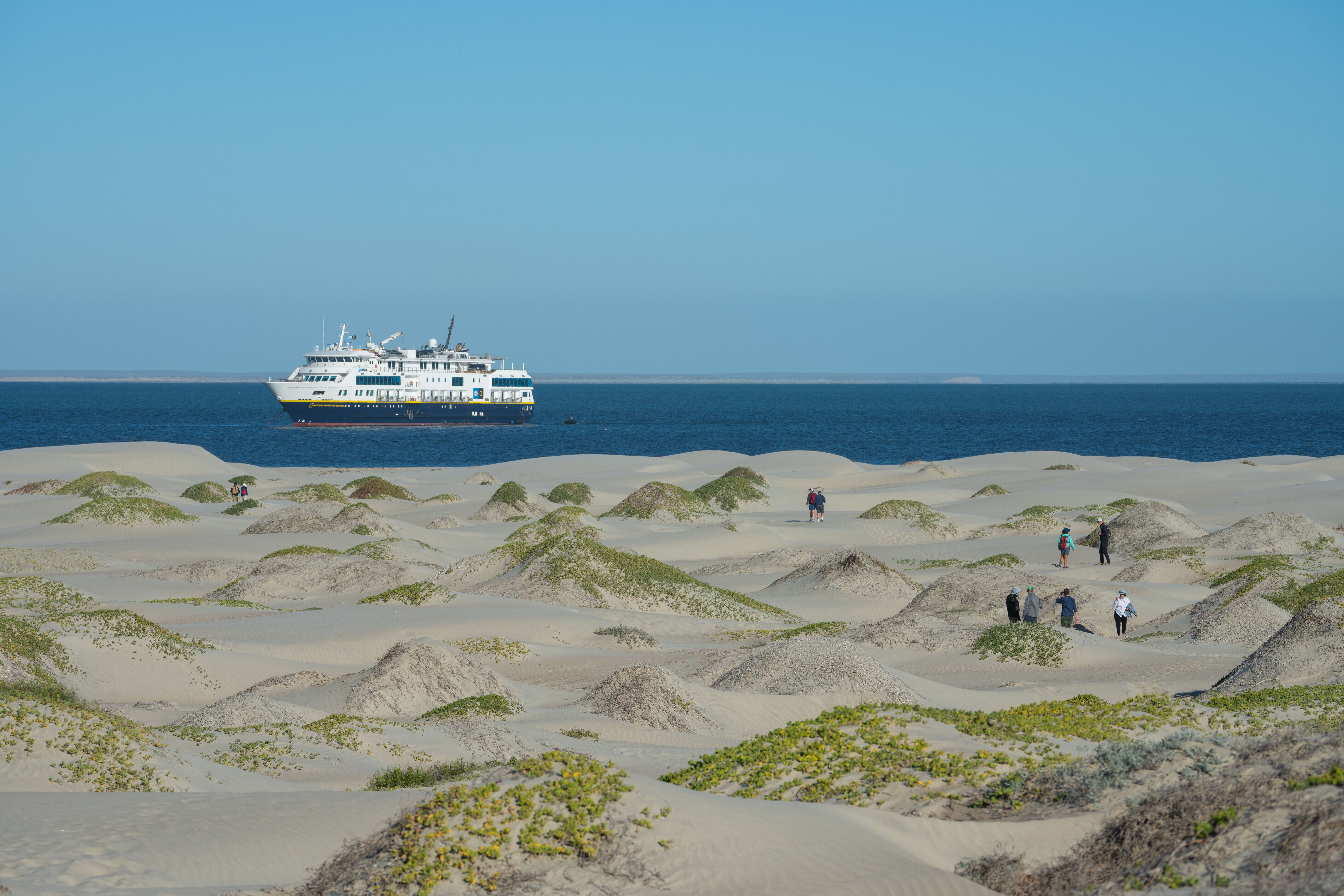 This morning and afternoon, we spent several hours among dozens of gray whales in Bahia Almejas. It was fascinating to observe gray whale behaviors in a breeding lagoon. We watched pairs and trios of whales surface and roll near one another. We listened to them breathe and we felt the misty air from their exhalations. At times, gray whales swam very close to our small boats, and it was thrilling!