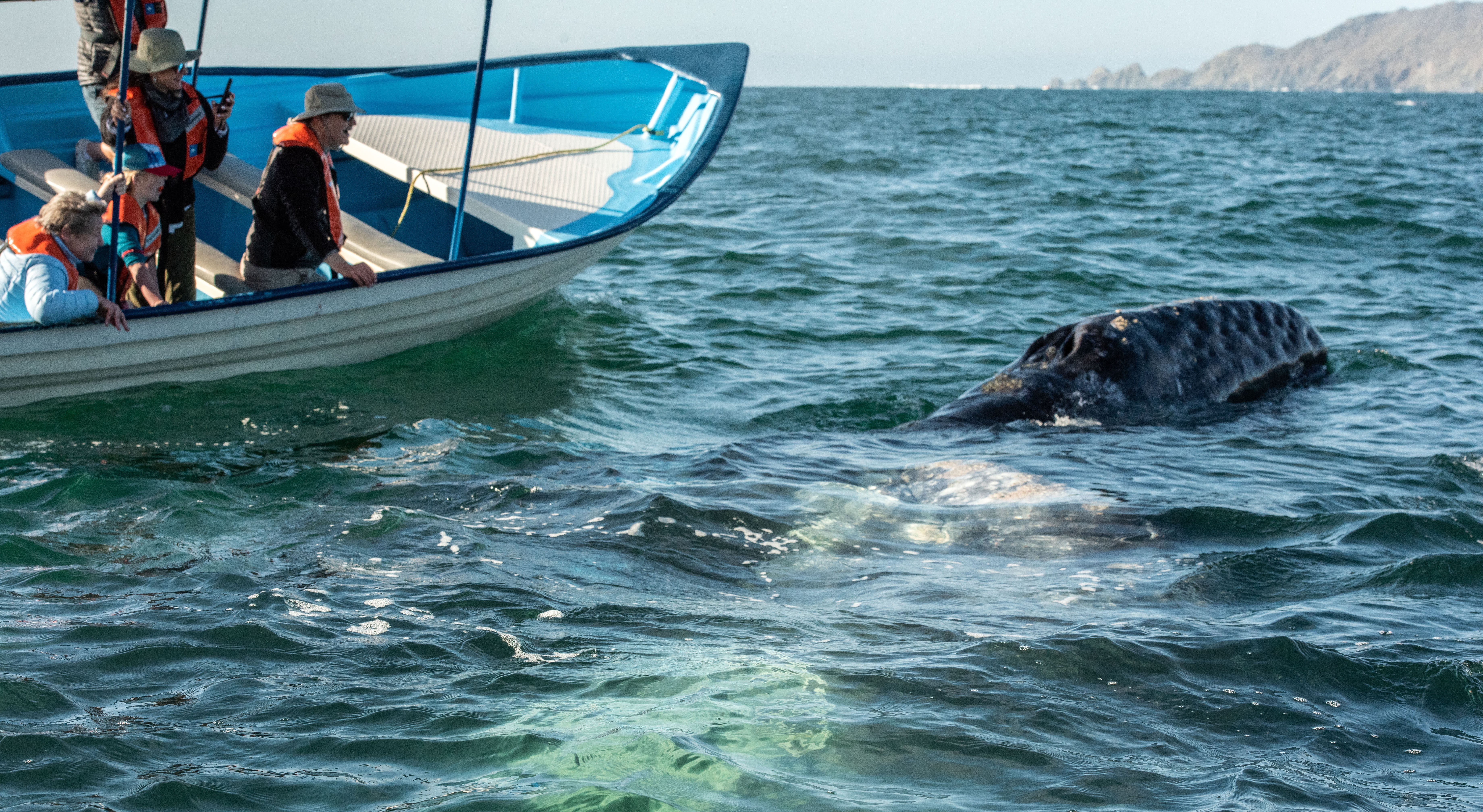 National Geographic Sea Lion was divided into two groups: coyotes and pelicans! Once the announcement was made, each group headed out on a panga and began the hopeful journey to the southern end of Bahia Almejas. Without going far, everyone saw the blows in the distance and our panga drivers approached slowly…in hopes of that dream of a close encounter with cetaceans!