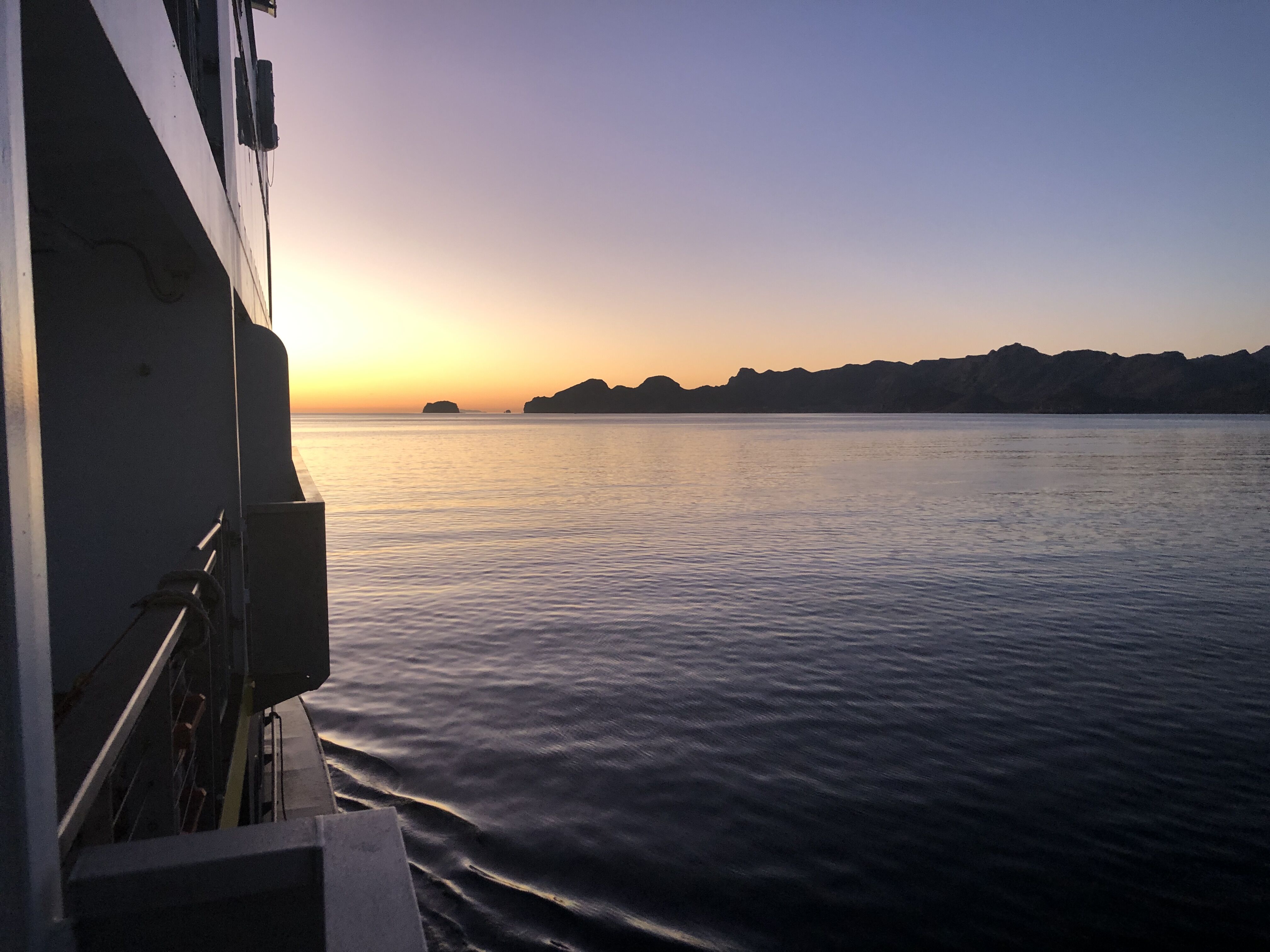 National Geographic Sea Lion remained at anchor near the middle of Isla Margarita. From this location we explored Bahia Almejas, one of three major coastal lagoons used by California grey whales as mating and birthing grounds.