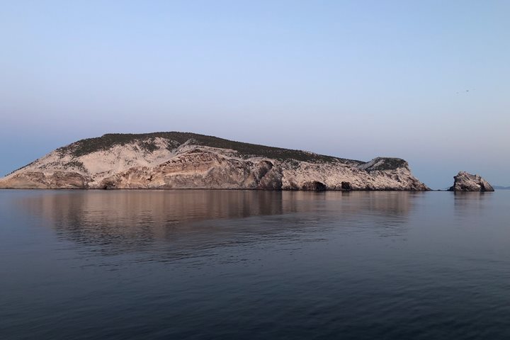 With the warm welcome of Loreto trailing our wake, we arose to our Baja California ad-Venture with a classically Cortéz-ian sunrise. Fiery light illuminated brown pelicans, Cocos boobies, Heermann’s and Bonaparte’s gulls while a pod of common dolphins raced to catch up to the stretch class. Rounding Isla San Ildefonso a mysterious splash revealed an unidentified shark concluding a kill near the surface beneath a buzzing horde of endemic yellow-footed gulls. Copious gelatinous animals—jellyfish, siphonophores, and comb jellies—streamed by as we rounded the corner into Bahía Concepcíon.
