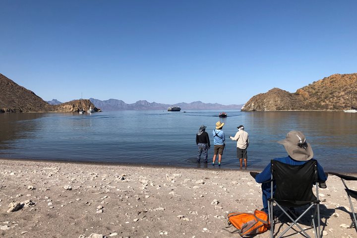 A delicious meal while anchoring opened the floodgates to our first seaside activities on a rising tide, with some cruising in Zodiacs and others walking the shoreline amidst the mangrove’s oyster-soaked, soaring stems. Ospreys, least sandpipers, and swallows joined in the bio blitz while Cortez stingrays, flatworms, and giant Pinna mussels rounded out the intertidal explorations.