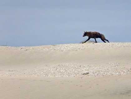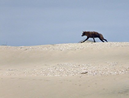 We awakened this morning at anchor in Bahia Magdalena to overcast skies with light airs. Our morning was devoted to exploring the beautiful dunes of barrier island Isla Magdalena. The crew lowered expedition landing craft from the lido deck, we loaded up, and upon arrival to the shore, swung legs over the side and into the refreshing waters of the bay. Groups gathered and dispersed, one moving along the shoreline in search of birds to observe, while others made their way over the dunes to the Pacific on the other side. Along the way we marveled at the beauties of the desert. Sand, what an extraordinary shifting medium—constantly carved into new shapes, textures, and designs by the elements and creatures. Large clumps of plants sprawled along peaks and valleys, and huge piles called “middens” of shells lay strewn everywhere. My feet enjoyed the various textures of soft silk, hard-packed, and clumpy crunch sink-to-my-ankle. I heard the Pacific before I saw it, and as I took in the full beauty of the scene of the final dune my eyes detected movement and—wow!—a coyote walked slowly into view and then began loping and finally running south along the top of the dunes. I was quite a distance away, and as I came upon its tracks I tried to follow them, but got lost around some plants—there were so many coyote tracks. I descended the final dune towards the Pacific and saw the reason Bahia Santa Maria has been nicknamed “Sand Dollar Beach”… large sand dollars everywhere. Some hardy souls were body-surfing in the mid-60’s waters and I dropped my bag and joined them. Cold! Invigorating!