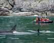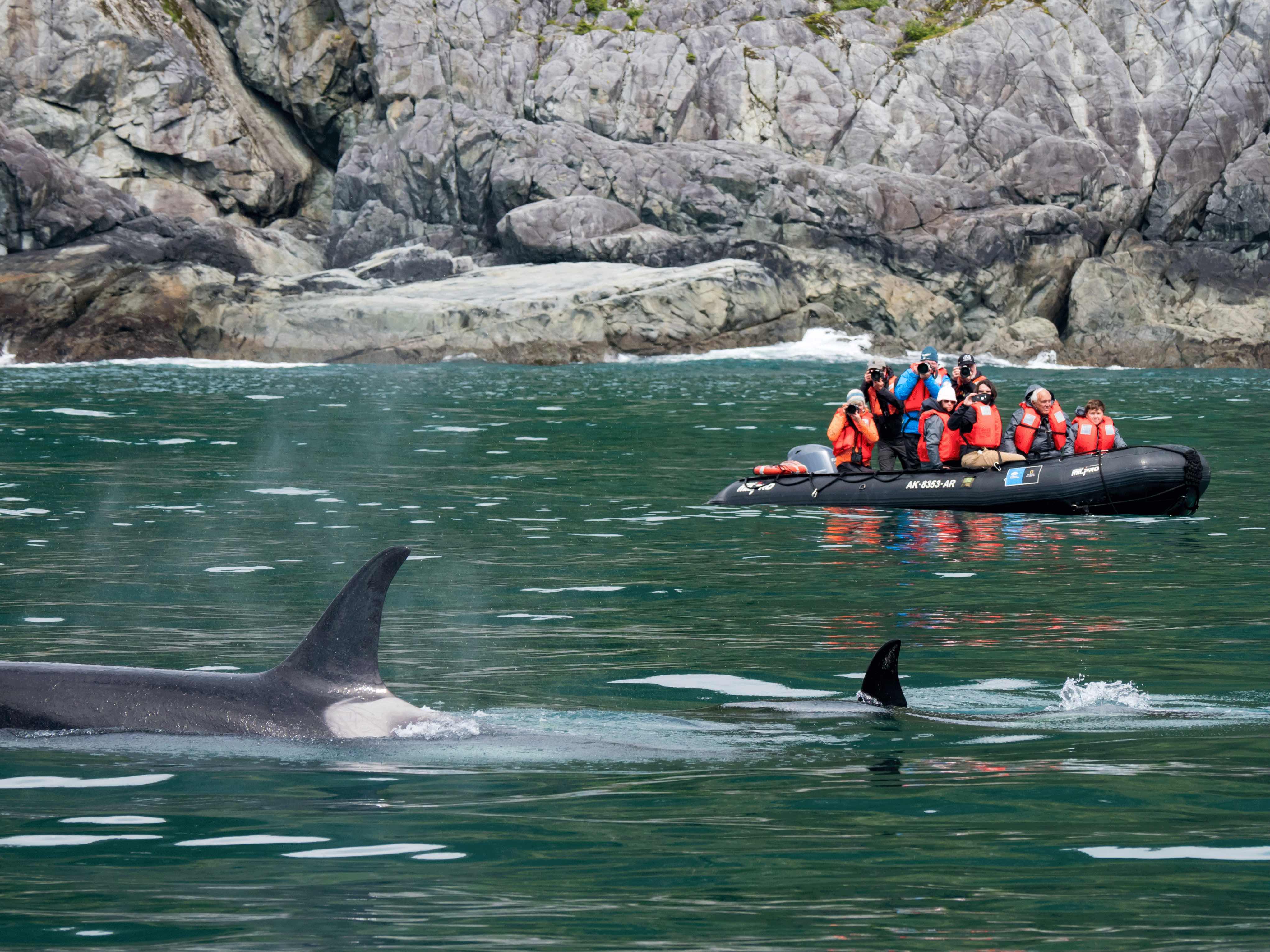It was another beautiful day in Southeast Alaska. There was a blue sky over Saook Bay as the Zodiacs were launched and everyone prepared for a morning of exploration. Several adventurous souls went on bushwhack hikes through the temperate rainforest on Baranof Island. Everyone was on the lookout for wildlife or signs that the wildlife had recently been in the area. There were also tours of the bay by Zodiac, investigating the crystal-clear water and the life below. In the afternoon, the National Geographic Venture cruised through Peril Strait. Killer whales were sighted off the port bow and everyone found a spot on the ship’s deck to watch the whales swim by. It was a fantastic end to another sunny Alaska day.