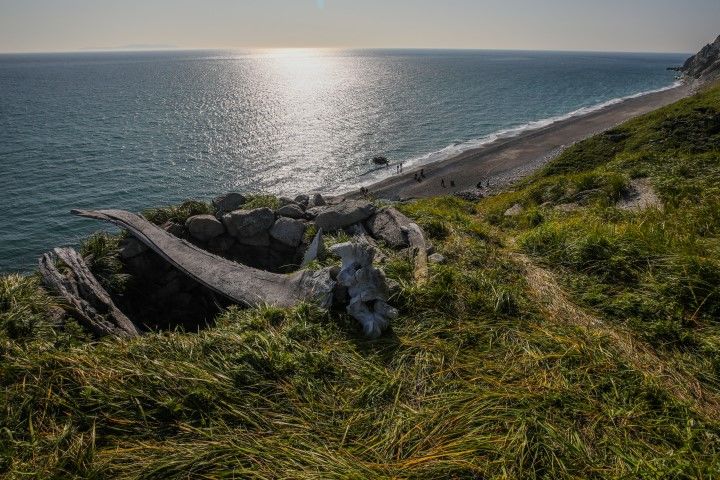 After listening to the glacier, we made the trip back to Bartlett Cove, waving at the bear, humpbacks and sea otters we saw along the way. Once back on land, we were greeted by Sonya, a member of the Tlingit Tribe of Hoonah and a park ranger. She invited us into a long house, built in 2016 and the first of its kind in more than 250 years. Sonya, whose father is the leader of the Raven Clan, told us stories of her history, including the story of the Little Black Glacier, a small glacier that moved as fast as a dog could run and displaced her people. This glacier then became the Big Glacier. She told us the stories of the Raven and three Eagle clans that shared this land, and how they survived the movement of the glacier, then the years of eternal winter that covered everything in snow. The winter that lasted for two years is now believed to be the result of massive volcanic eruptions that filled the sky with ash and dropped most of the planet into freezing temperatures. She spoke of earthquakes and the largest tsunami in recorded history that swamped the forest. These cataclysmic events cut food and resources in half almost instantaneously. But her stories were not ones punctuated by disaster. They were stories revealing great strength and resilience. Today that resilience is beautifully rendered in the carvings and story wall of the long house in Glacier Bay.