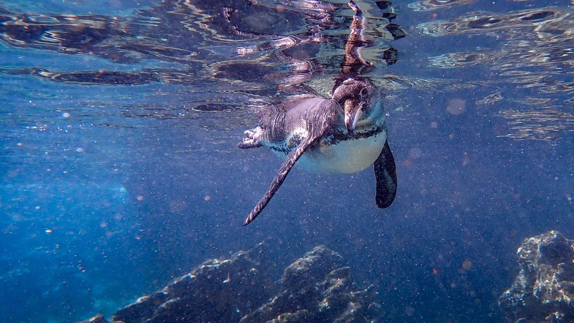 After breakfast, we went snorkeling at the base of Pinnacle Rock, where we found penguins and sharks fishing in the clear waters.